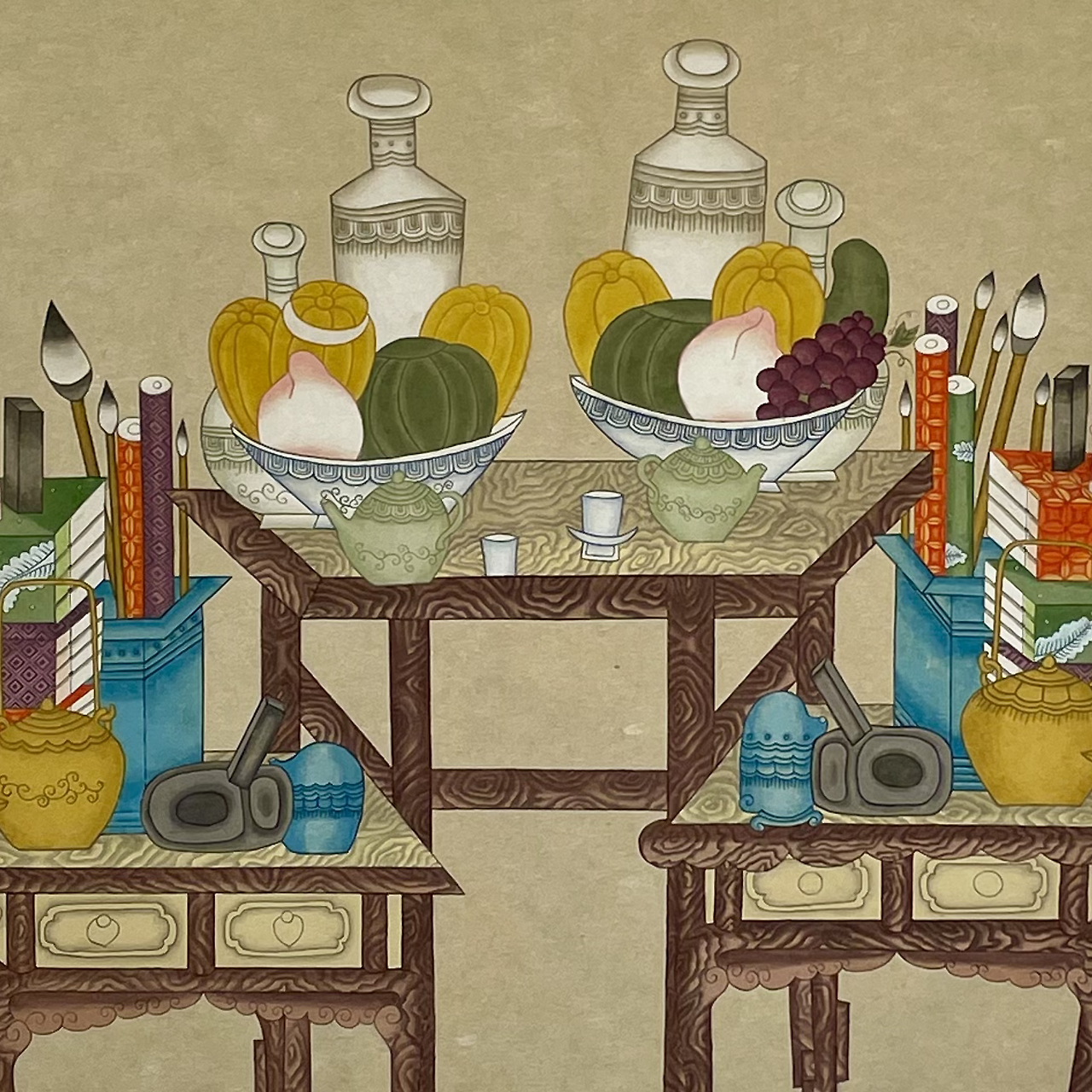 시점이 다양하다는 것을 몰랐을 때다. 서양화를 볼 때 보통 시점이 하나라서 우리가 사물을 진짜 볼 때처럼 느껴진다. 사진처럼 말이다. 그런데 이게 맞다는 틀을 가지고 있으면 민화는 잘못그린 그림처럼 보인다. 민화는 시점이 하나가 아니다. 민화는 여러 시점으로 담아내 윗면만 보여야 하는 물건 옆면도, 윗면도 보여줄 때가 있다.