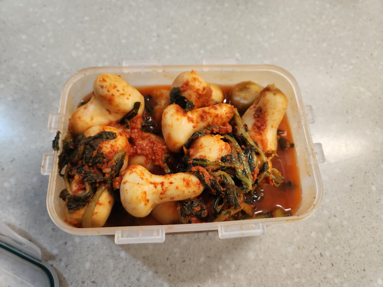 - 김치 많이는 못했으니 김치통 작은 거 있으면 퇴근할 때 들러서 갖고 가라~