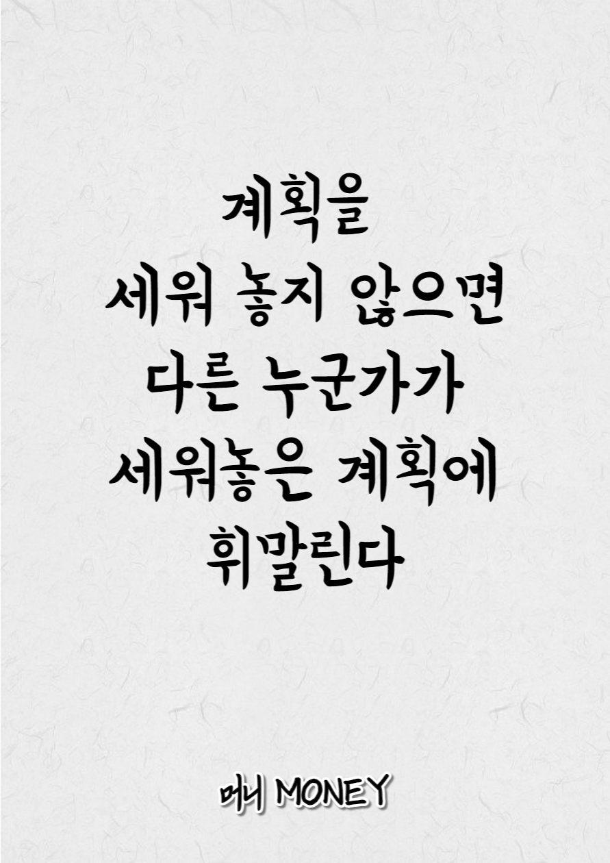 이 말을 기억하는 사람은 많지만 생각보다 실천하는 사람은 적다. 계획을 세우고 하나하나 돌파해나가는 삶이 얼마나 재밌는지를 경험해 보지 못한 사람은 모른다. 생각하는 대로 삶이 이루어지는 것을 경험해 보지 못하면 평생 사는 대로 생각하게 된다. 그 삶이 나를 여기까지 인도했노라 자위하면서 말이다.
