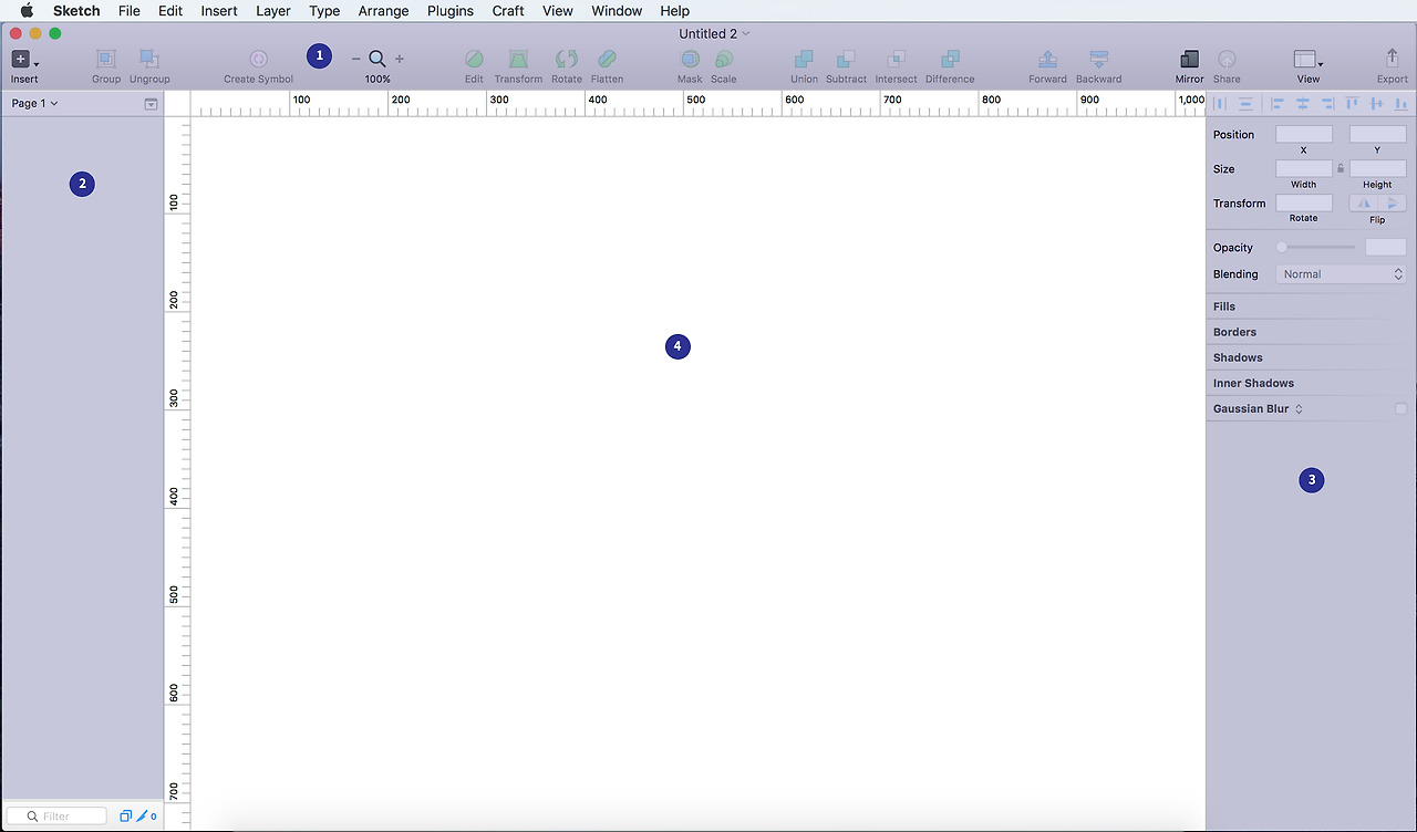 먼저 스케치의 인터페이스를 살펴보자. 크게 다섯 부분으로 나뉜다.
