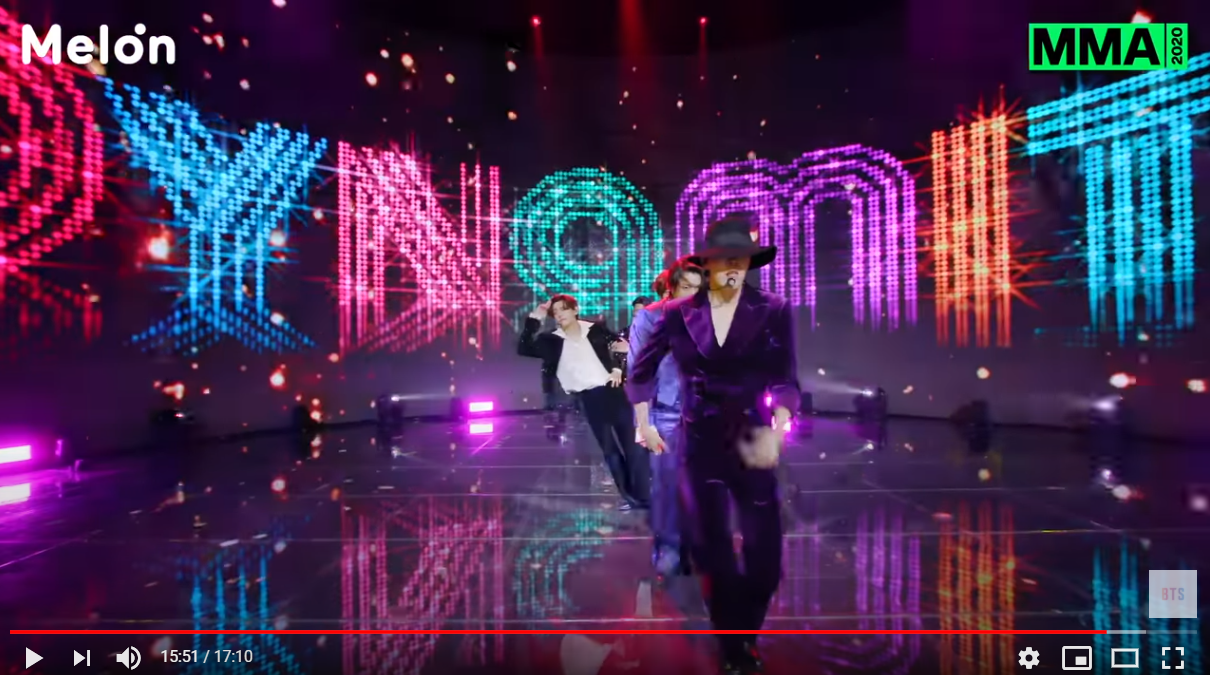 연말에 특별한 시상식에 선보이는 무대이니 가수가 평소 무대보다 신경을 많이 쓰는 건 당연하겠다. 하지만, 방탄이 보여주는 무대는 늘 특별하다. 무대의 규모, 이 무대만을 위해서 선보이는 짜임새 있는 안무, 전하고자 하는 메시지, 무대 세트가 주는 아름다움도 특별하다.