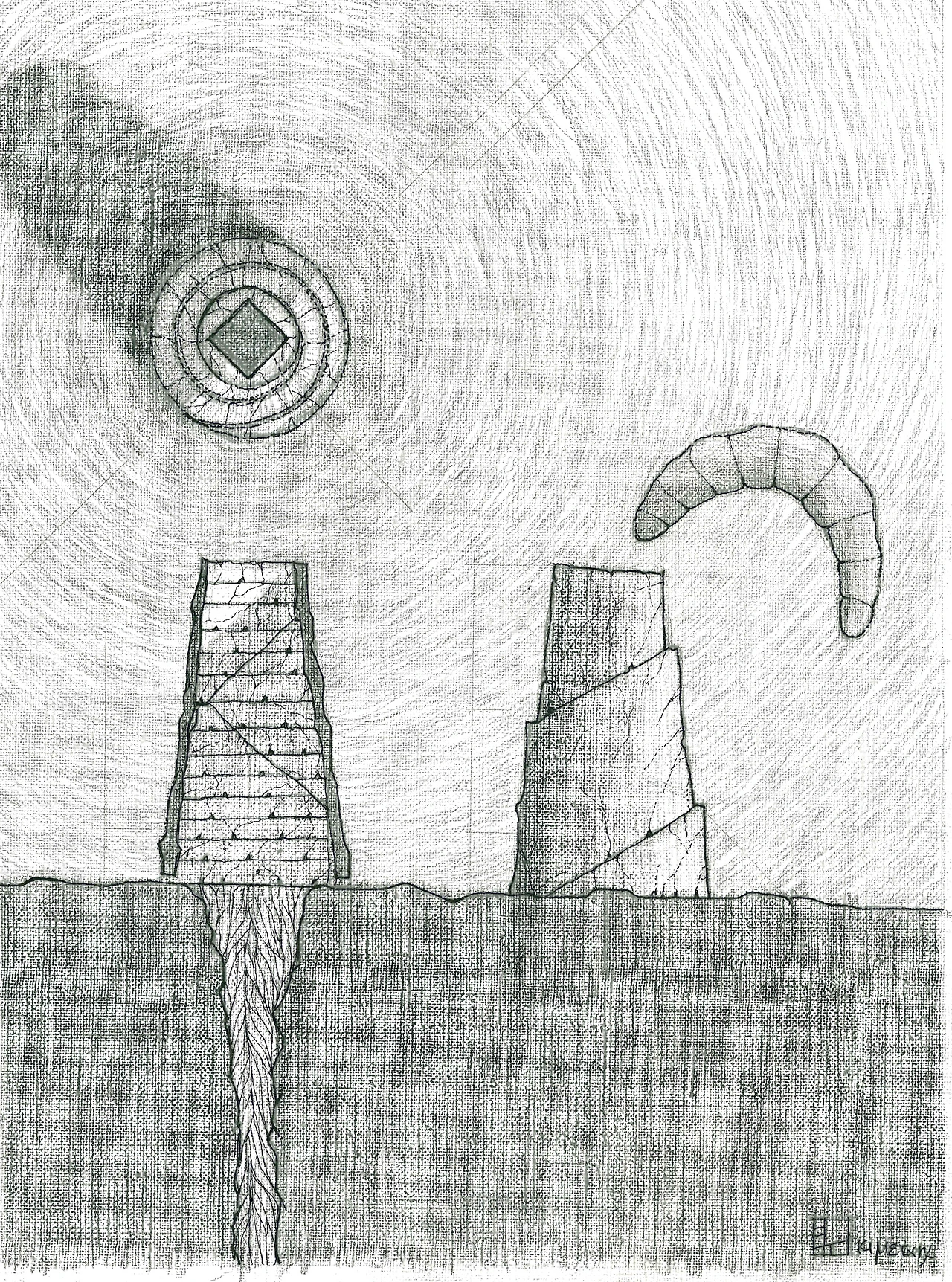 가벼워진 유령-건축가는 아모르보르들 amorvores 의 고원에 다다릅니다. 고원 위에서 유령건축가는 가만히 있을 수 없습니다. 바벨의 회전 때문에 바벨탑 밖으로 날아가 버릴 수 있기 때문입니다. 유령건축가는 그 자전의 반대 방향으로 걷습니다. 사각형 구덩이 때문에 유령건축가는 고원의 가장자리를 따라 걸을 수밖에 없습니다. 그 모퉁이를 만날 때마다 유령건축가는 조심스레 찢어진 하늘의 살을 잡습니다. 한 손은 무한을 잡고 한 발은 심연을 밟으며 유령건축가는 우아하게 도약합니다. 유령건축가는 삶의 춤을 춥니다. 심연과 무한사이에서 언어의 자전과 역행하며 추는 비상의 춤, 그 춤을 추며 유령건축가는 아모르보르의 몰락을 찬양합니다.