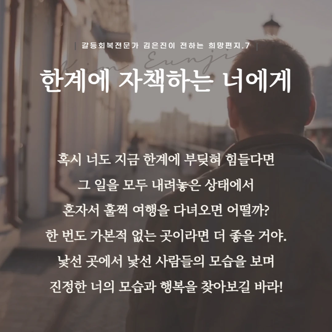 갈등회복전문가 김은진이 전하는 일곱 번째 편지.