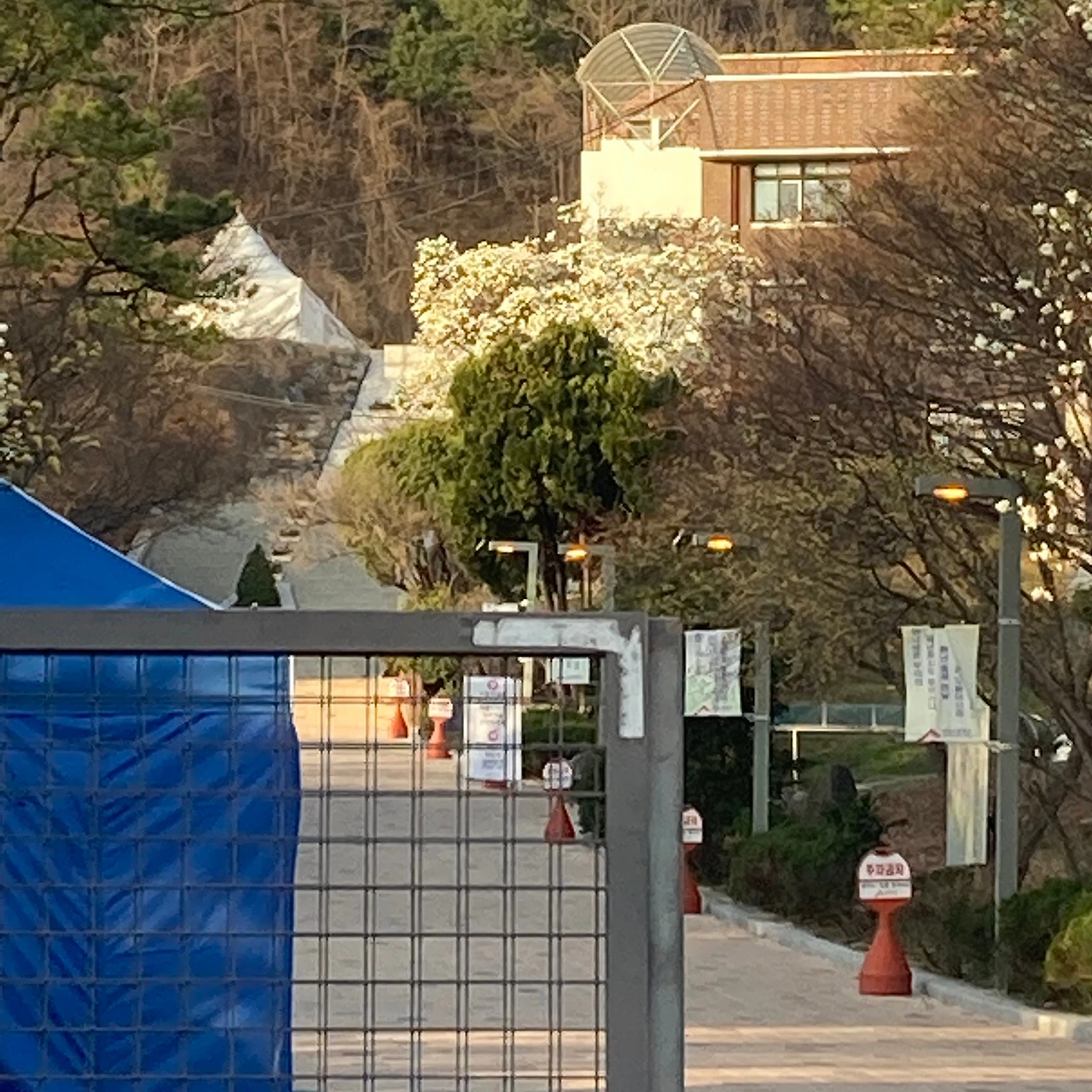사진 저 높은 곳에 보이는 건 내가 잊지도 못하고 잊을 마음도 없는, 내 출신 고등학교의 (주관적) 랜드마크인 목련나무. 나는 저 나무 덕에 목련을 사랑하게 됐다. 또 저 나무 덕에 남달리 구멍 많던 내 학창 시절을 하얗게 메울 수 있었다. (사진은 사정상 고향 동네에 찾아갈 일이 없어진 내가 저 나무만큼은 너무 보고 싶다고 하니 근처에서 일하는 친구가 찍어 보내줬다. 외부인 출입금지기에 멀리서나마.)