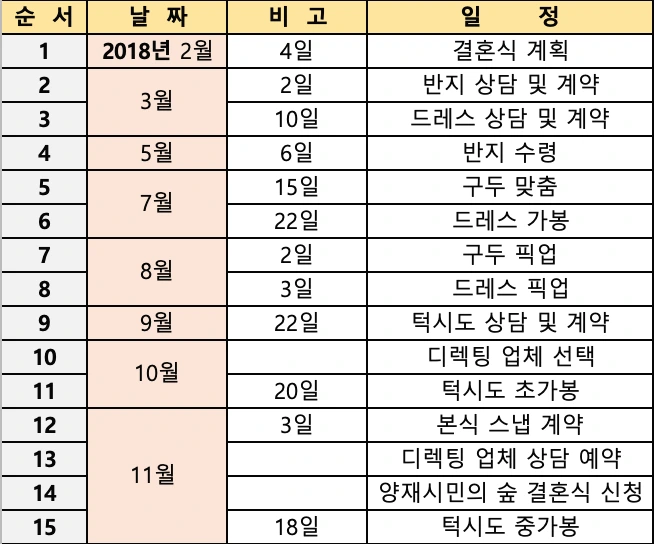 그렇게 결혼식의 큰 틀을 정한 뒤, 사진작가님, 드레스샵, 테일러샵, 한복집, 메이크업샵을 개별적으로 알아보고 이렇게 개별 선택할 경우 예산이 자연스레 스드메 패키지보다 비싸질 것을 대비해서 투자할 것과 포기할 것을 명확히 나눴다.