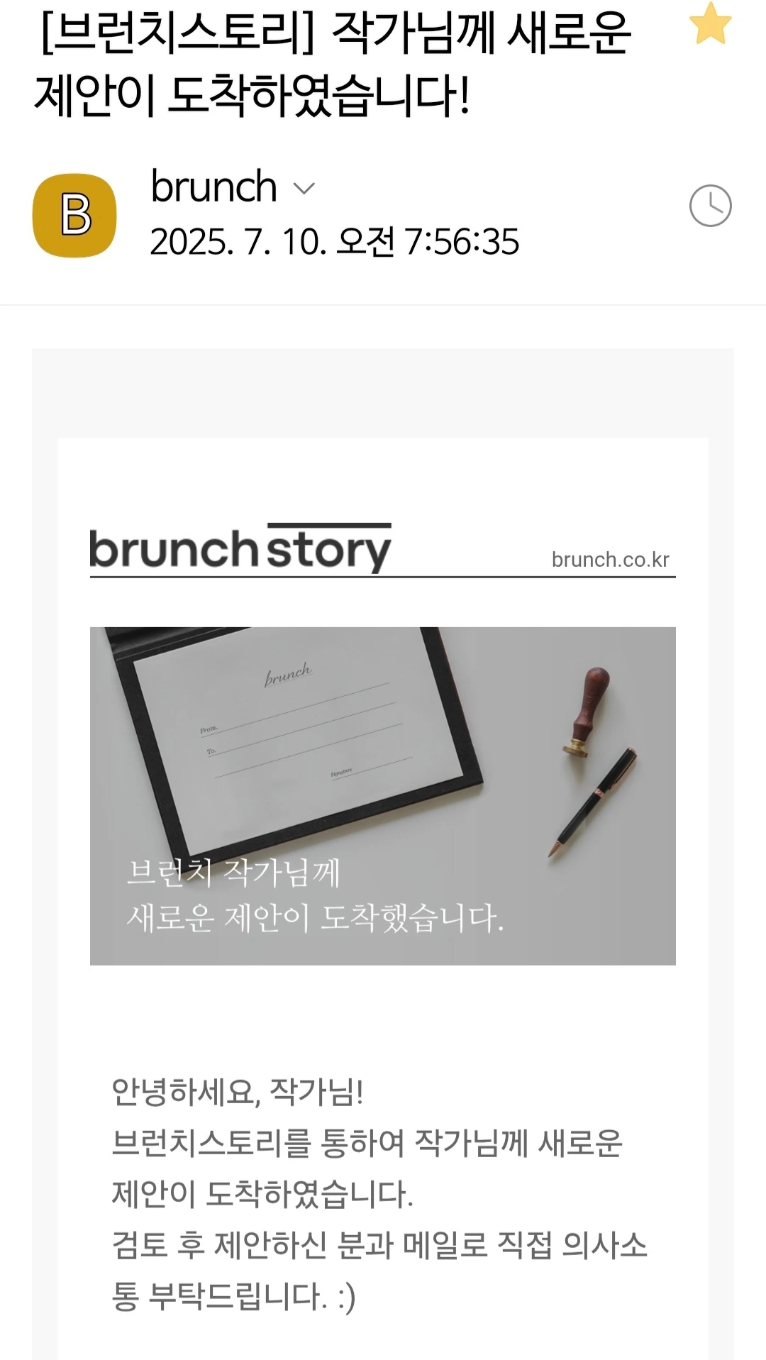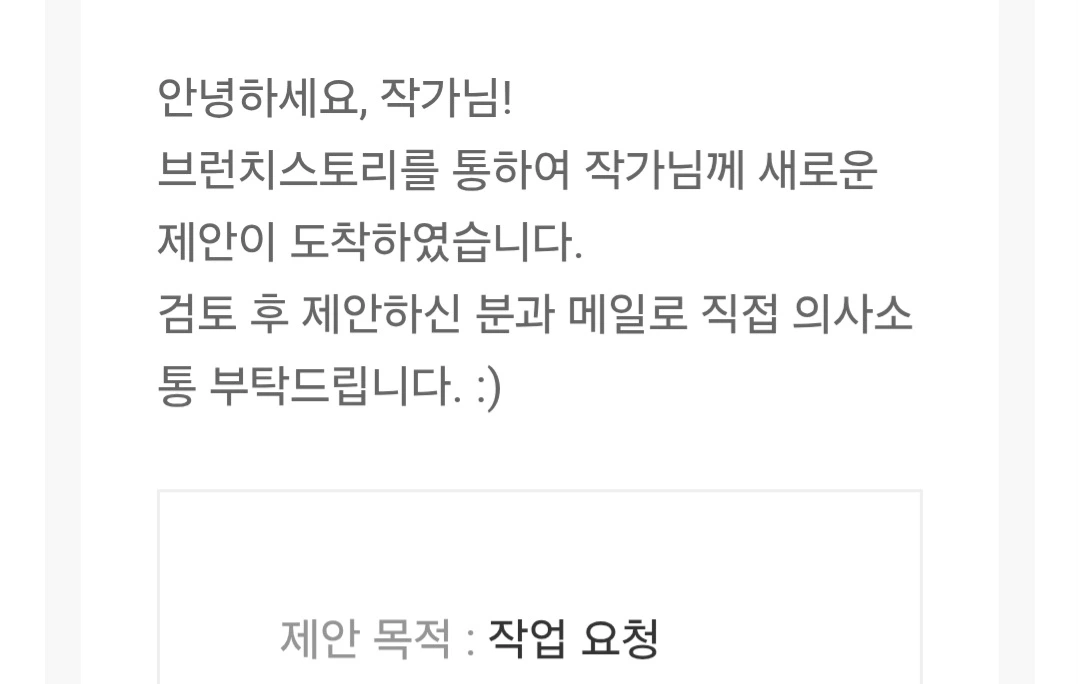 브런치스토리에서 제안이 있다는 메일과 상대 메일을 보내 주었습니다.