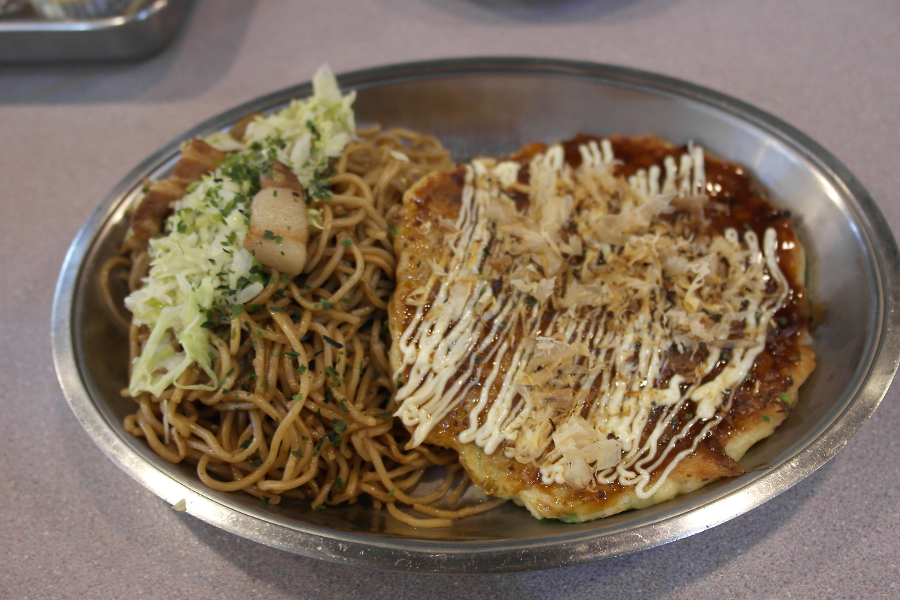 다음날 아침은 쇼핑몰 지하에서 먹었다. 야끼소바와 오꼬노미야끼 세트메뉴를 시켰다. 사진은 훌륭하지만 맛은 별로다. 문득 속았다는 생각이 들었지만 너무 원망하지는 않기로 했다. 어쩌면 나야말로 겉보기는 멀쩡하지만 알맹이는 부족한, 함량 미달의 인간이니까.