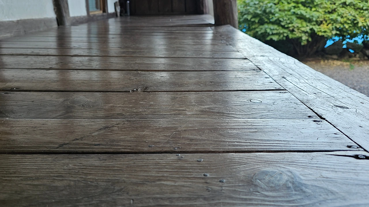 보수는 했지만 바닥 기둥에 세월에 흔적이 남아있다.