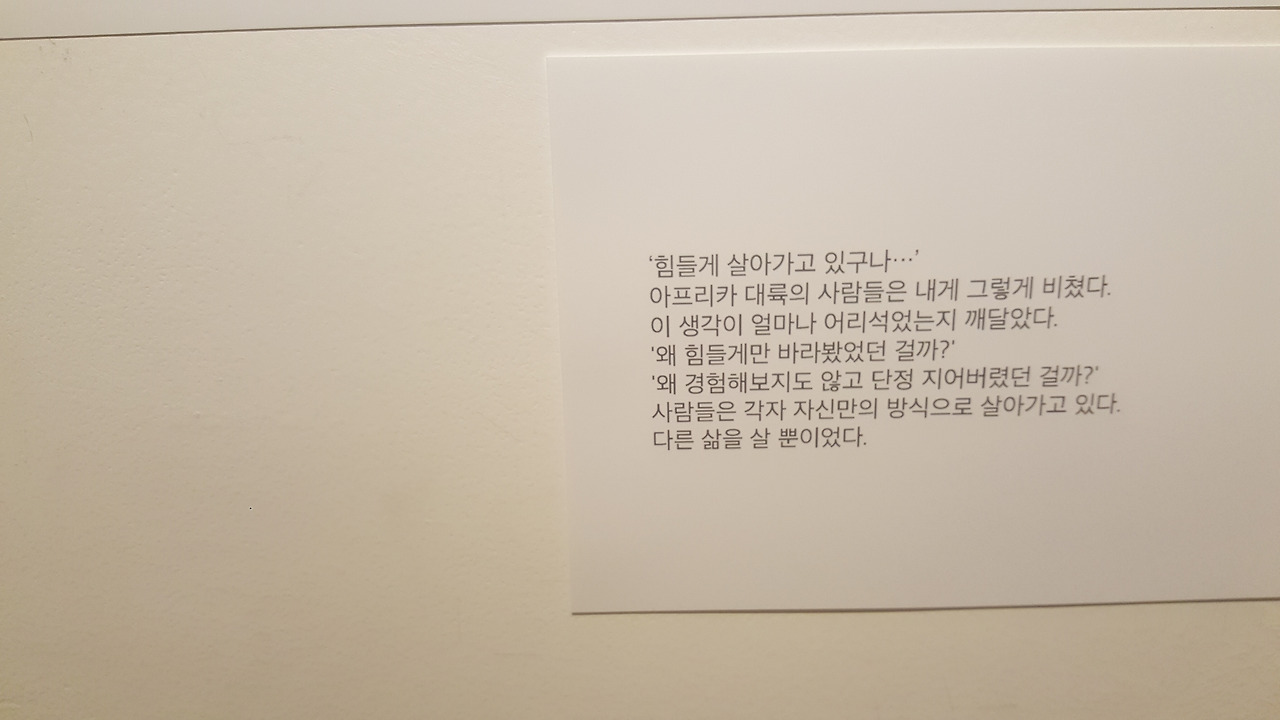 문을 열고 들어가니 아프리카 사진이 전시되어 있었어요