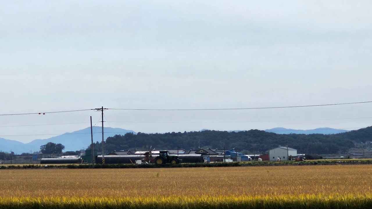 자전거, 경운기, 트랙터가 분주히 움직