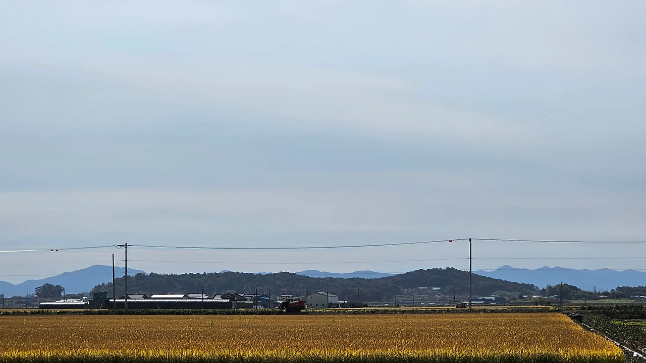 기계가 지나간 자리 쪼그리고 앉아 텅 빈 논을 바라보는 농부는 무슨 생각을 하고 있을까?