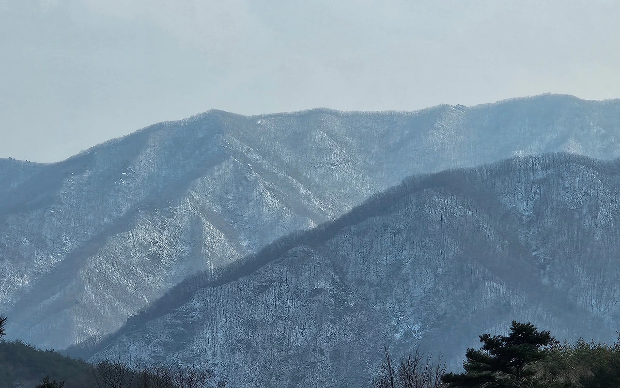 산능선 굴곡진 곳마다 내린 눈을 보니 이것 또한 작품입니다.