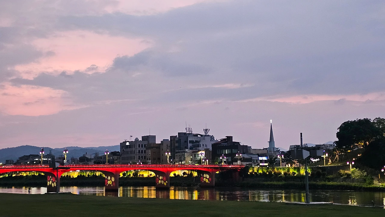 도시에 불빛이 화려하게 빛나고 있습니다.