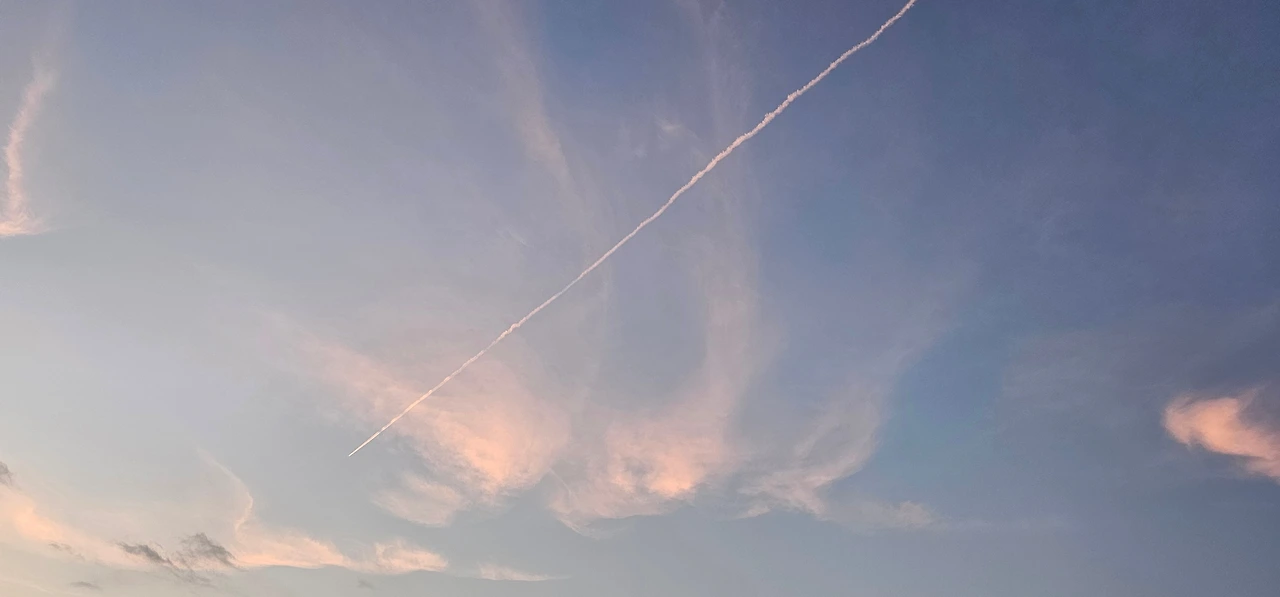 비행기는 비행운을 그리며 날아갑니다,
