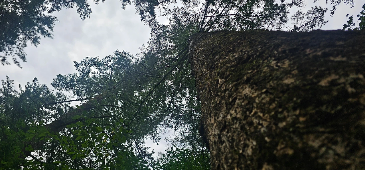 큰 나무들만큼이나 높은 하늘과 가지들이 쭉 뻗어 그늘을 만들어 눈부심을 막아주며 빈틈으로 구름들이 떠다니고 있었습니다,