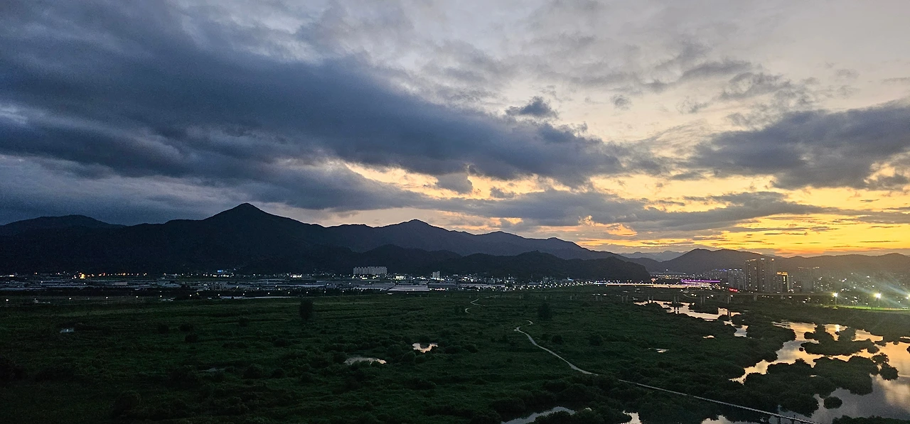 산너머 저무는 해가 세상을 어둠으로 뒤덮는다.
