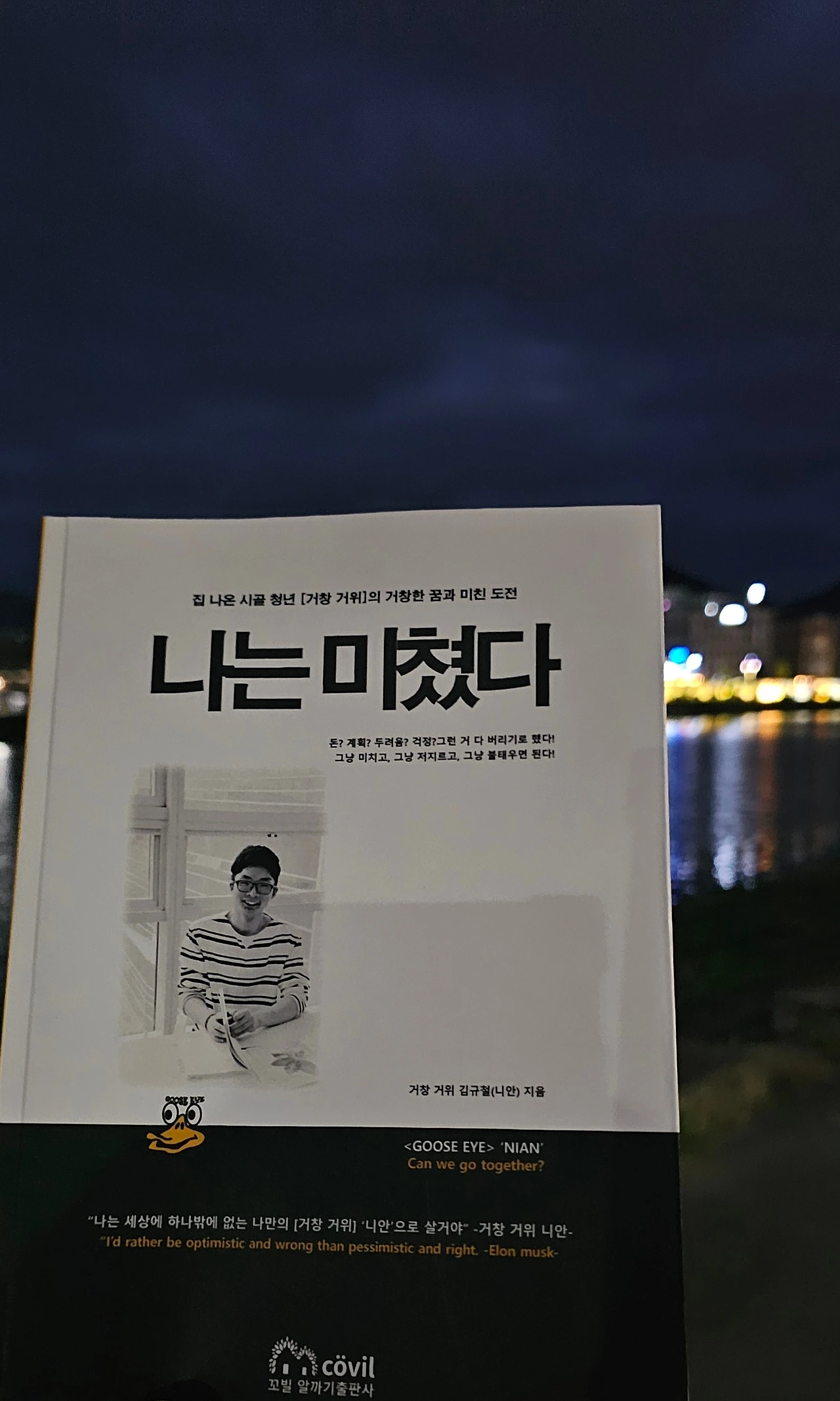 오랜 시간 작업을 한 끝에 드디어 출간을 하였습니다. 첫 수필집 나는 미쳤다 필명 고 니안으로 개명도 하였고 새로운 삶을 살기 위해 나 자신을 바꾸고 있습니다. 두려움 속 멈춰있던 시간 속에서 이제는 저지르고 도전을 하는 느낌은 표현할 수없을 정도입니다.