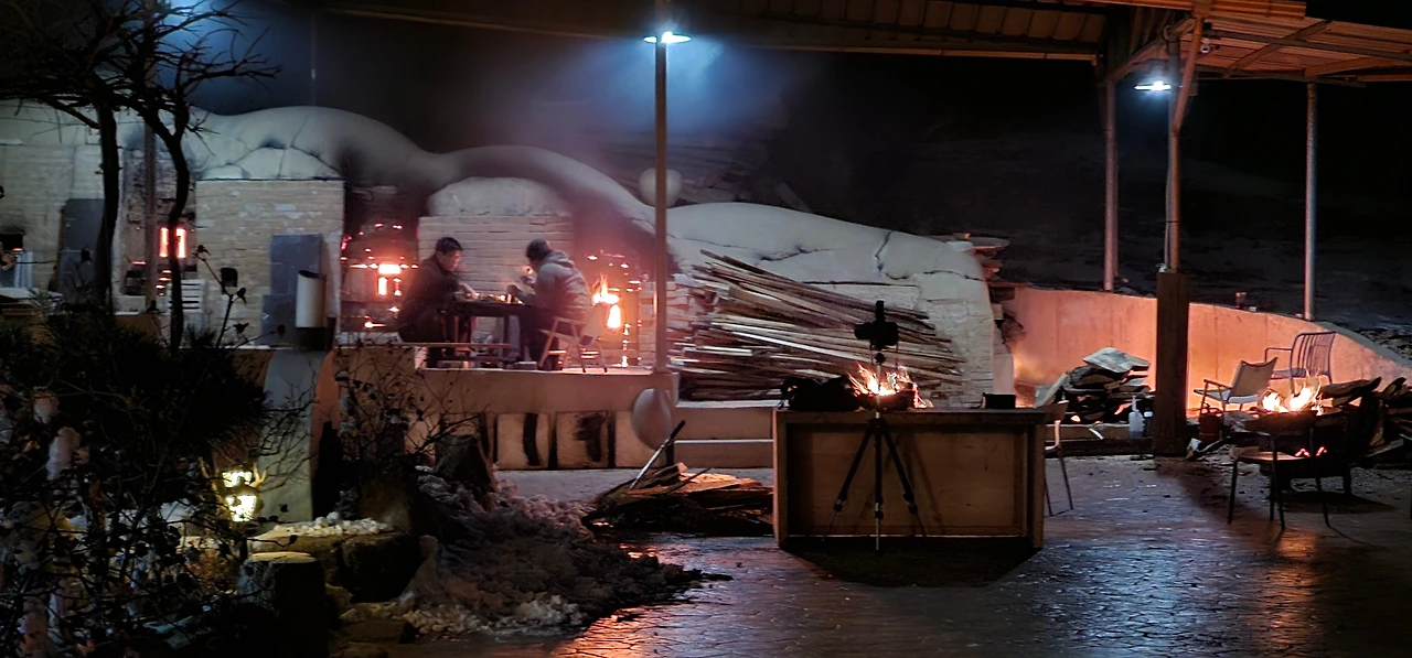 차가운 바람이 손과 귀를 얼렸지만 가마의 뜨거운 열기를 보니 아무 생각이 들지 않았다. 도예가는 오직 눈을 통해 불을 확인하고 나무를 넣고 반복되는 작업을 이어가며 서서히 열기가 오르면 틈을 막았다,