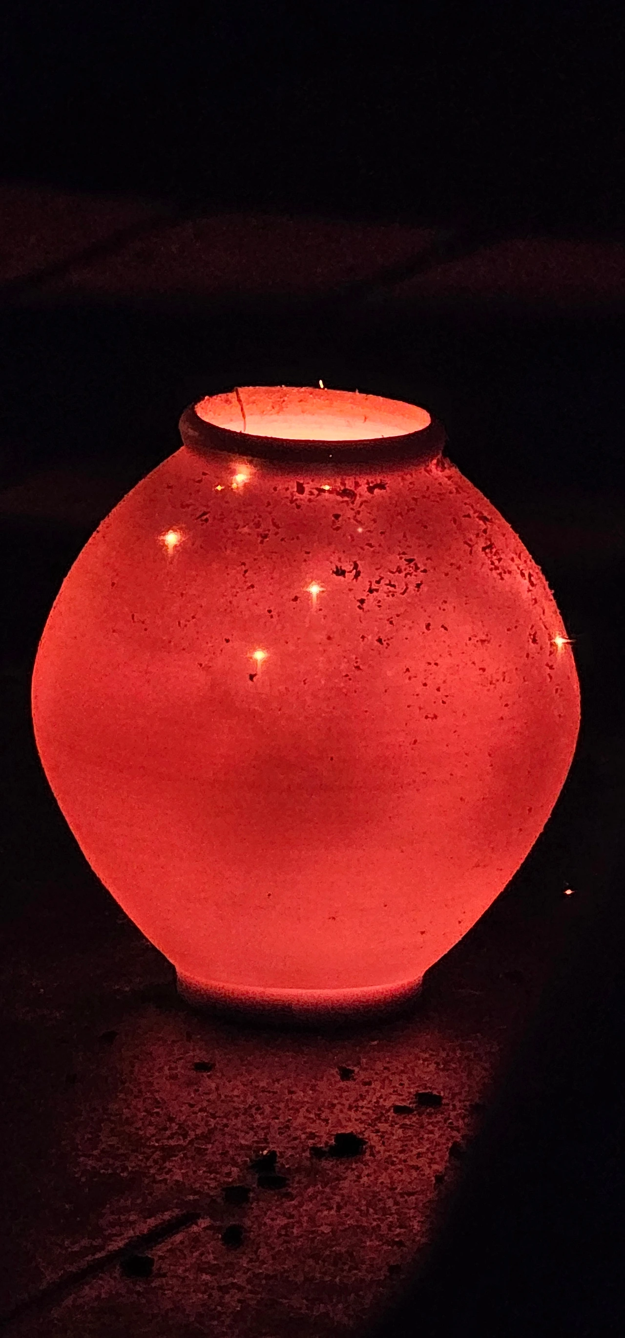 가만가만 장작 타는 소리에 눈을 감고 들어보니 마음을 평온하게 해 주었다, 불길은 알 수 없는 느낌을 주며 숙연하게 만들었다. 어둠이 짙어질수록 더 빨갛게 달아오르는 불은 따뜻하지만 뜨거웠다. 도예가의 손길이 들어간 달항아리 어떻게 만들어졌을까? 궁금해지는 순간도 바쁘게 움직이셨다. 인고의 시간을 거쳐 수많은 노력에 의해 예술이 피어나는 모습에 존경의 박수를 보내어본다. 잠시 항아리를 구경할 수 있는 시간 달이 차오른 것처럼 예뻤다.