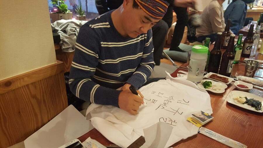 예정보다 일찍 도착해서 기다리고 있었다. 시간이 다가올수록 많은 분들이 오셨고 오신 분들 중 이야기를 나누었는데 정말 멋진 분들이 많으셨다 정말 잘 왔다고 생각이 들었다 그리고 곧 임택 여행가님도 오시고 모임이 시작되었다 그리고 자기소개 시간 때에는 잘하는듯하다 마지막 말에서 실수 아닌 실수를 하고 얼떨떨한 마음으로 소개 시간을 마무리했다 다음으로 선생님께서 여행 이야기를 들려주시는데 푹 빠진 나머지 시간 가는 줄 모르고 들었다 그리고 선생님께서는 티셔츠를 준비하시어 직접 사인을 해주셨고 사진도 찍어주셨다