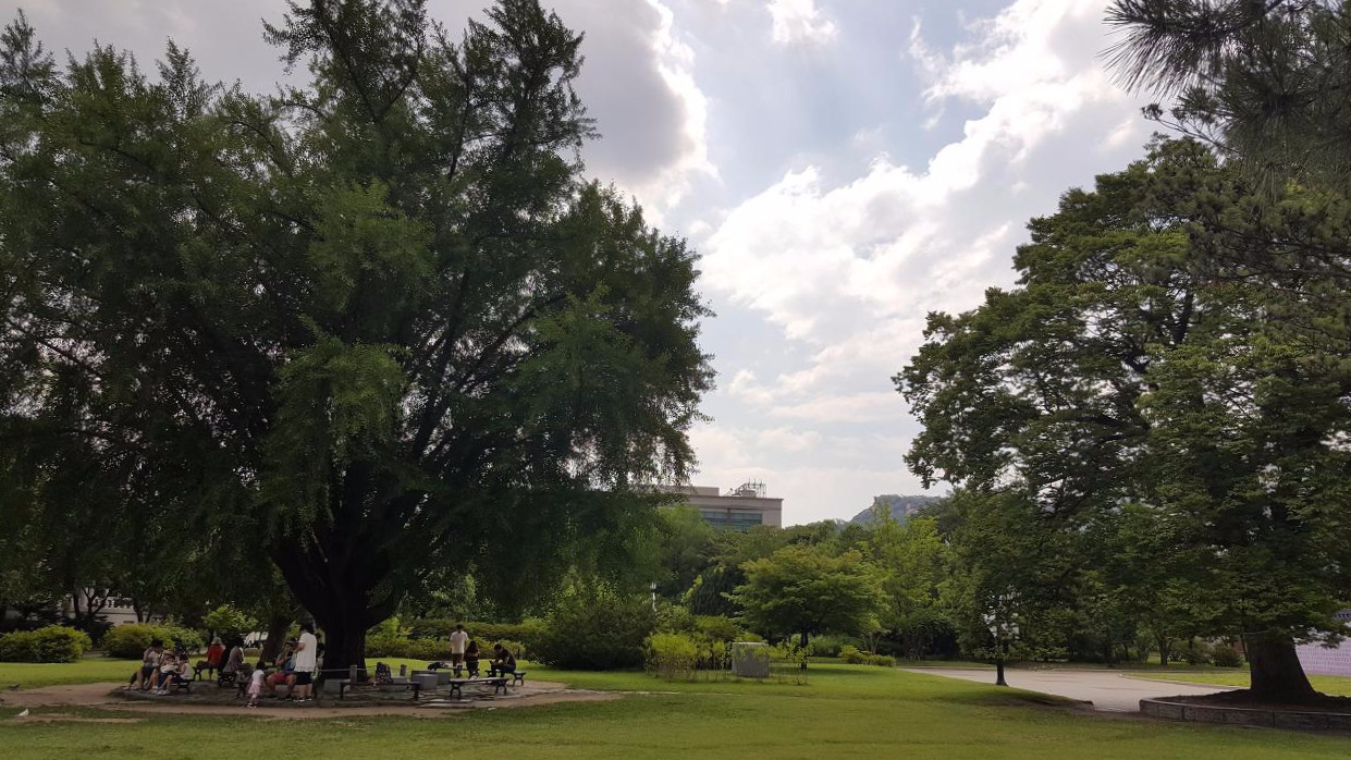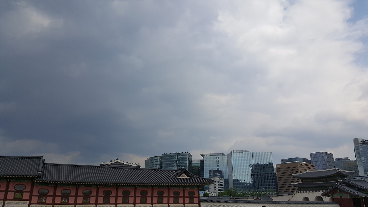 주말이라 사람도 많고 한복을 입고 다니시는 분들도 많이 계셨습니다. 안으로 가서 구경을 하고 밖으로 나오니우뚝솟은건물이눈에들어왔고 궁궐과 도시가 벽하나 사이에 두고 공존하고 있다는 게 신기할 따름이었습니다.