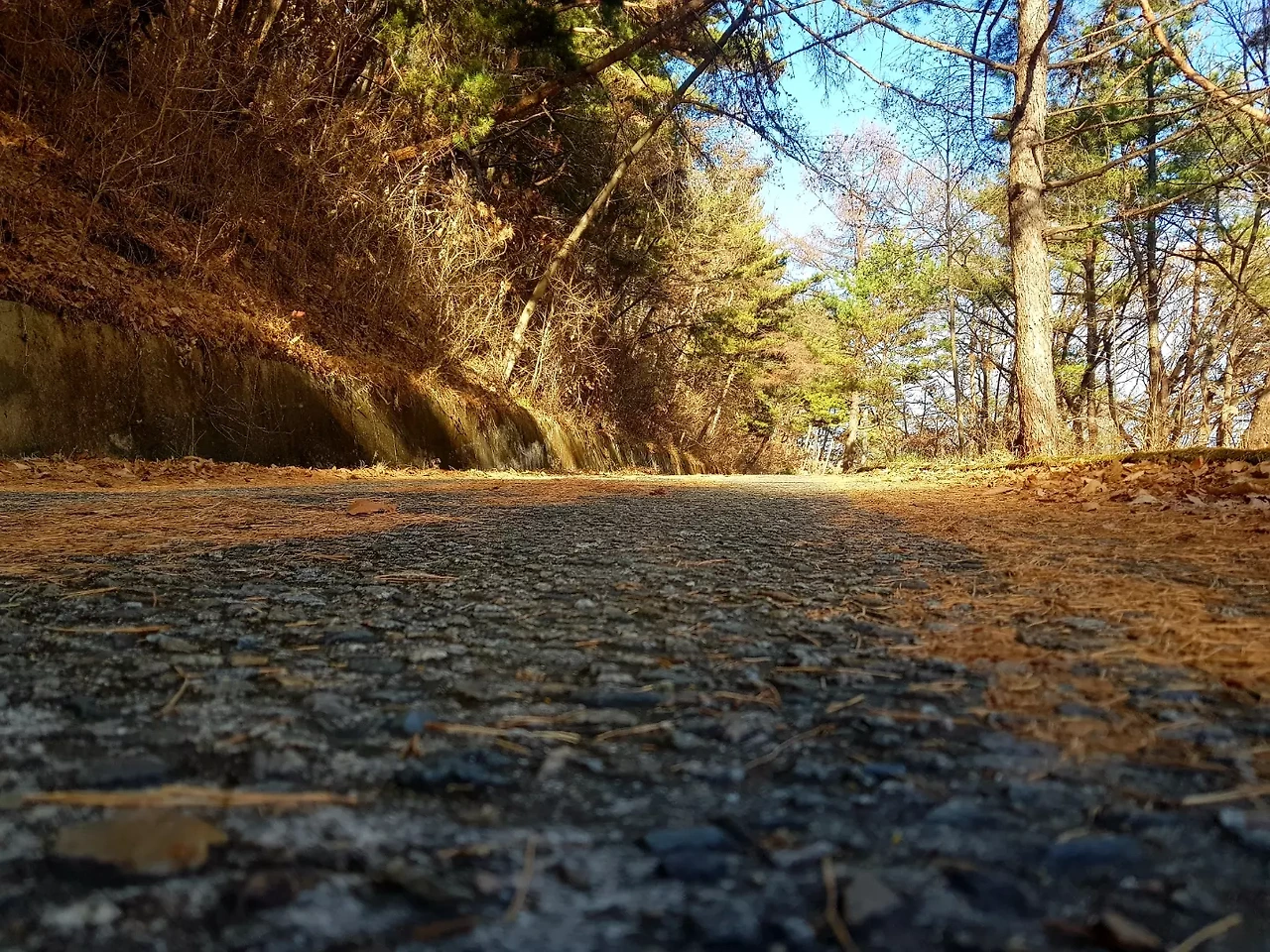 내려오는 길 햇살이 나무 사이로 비치는 모습이 예뻐