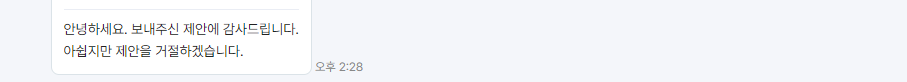 (···) 그래서 이번엔 지원이 어려울 거 같습니다.