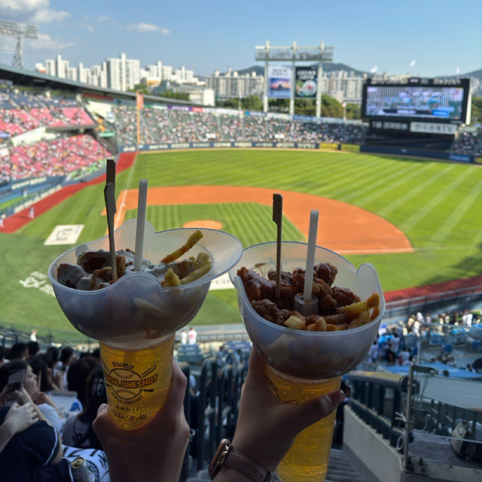 그렇게 친구에게서 티켓을 받아 온 짝꿍을 만나 잠실야구경기장으로 향했다. 지금 와서 생각해 보면 야구 직관을 하는 날이면 항상 날씨는 맑았다. (여행만 가면 날씨 빌런이 된다.) 그날도 어김없이 구름 한 점 없이 맑은 하늘이 계속되는 날이었다. 초등학생 이후로 처음 간 잠실구장은 엄청난 인파로 혼돈의 카오스가 따로 없었다.