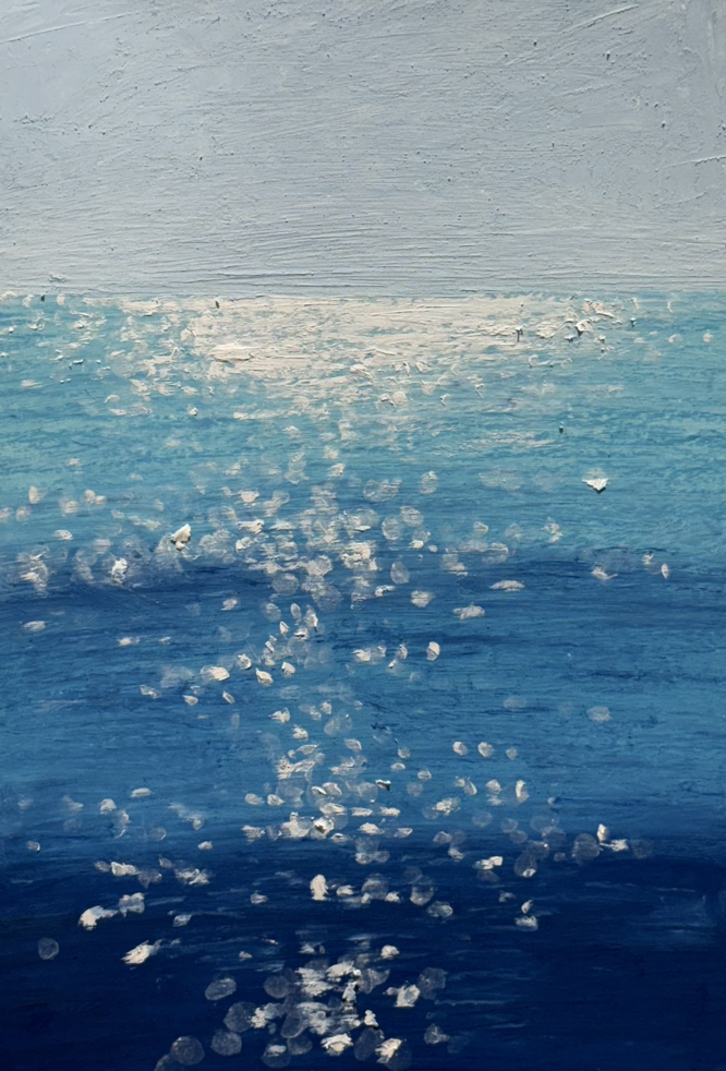 해안가를 따라 달리는 차 안에서 바라본 풍경의 중심에는 보석처럼 반짝이는 윤슬이 있다. 윤슬을 도화지 위에 옮겨 놓는다면 어떻게 그릴 수 있을까? 먼저 파란색 계열의 파스텔 중 하나를 꺼내어 도화지를 전체적으로 채운다. 바다의 느낌을 주려면 물결무늬가 필요한데, 처음에 칠한 바다색보다 한 톤 진한 색상으로 바다 물결을 가로무늬로 그려준다. 물결이 부드럽게 일렁이는 모습을 표현해 주기 위해 면봉으로 한 번씩 비벼주고, 오일 함량이 높아 수정이 잘 되는 화이트 오일파스텔로 윤슬을 점찍으며 그려준다. 화사하게 빛나는 중심 부분은 화이트 컬러를 많이 사용하는 것이 포인트이다. 윤슬은 초보자들이 그리기 어려워하지만, 복잡해 보이는 것과 달리 그리는 과정이 비교적 단순하다. 기본에 충실하며 차근차근 그리다 보면 생각보다 쉽고 멋지게 완성할 수 있다.