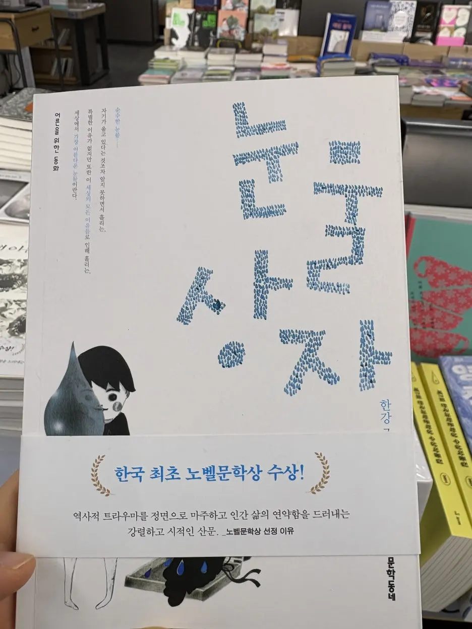한강 작가의 노벨상 수상 이후 서점의 한 선반은 한강 작가의 책으로 가득하다.