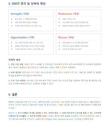 리스크 체크: 인근 지역의 평균 임대료와 권리금 시세, 손익분기점을 넘기 위한 최소 원생 수.