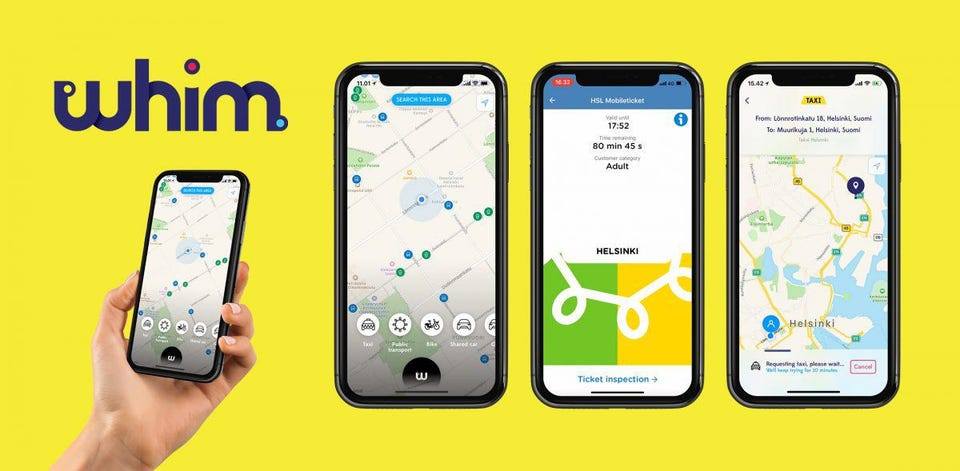 MaaS 개념을 가장 현실화 시킨 도시는 북유럽의 대표도시 헬싱키이다. 헬싱키는 2016년부터 시내의 트램, 버스, 지하철, 공항철도, 공항버스 등 대중교통을 총망라한 MaaS 프로젝트인‘휨(Whim)서비스’를 운영 중이다. 헬싱키 MaaS 프로젝트에는 핀란드정부와 헬싱키 지역교통국(HSL, Helsinki Regional Transport Authority), 핀란드의 통신 장비 제조업체인 에릭슨과 지멘스, 우버 같은 서비스 기업들이 대거 참여하고 있다. 시민들은 헬싱키 대중교통앱(HSL)을 통해 60유로에서 무제한 서비스인 499유로까지 차별화된 서비스를 이용할 수 있다. 이용자는 대중교통은 물론 30분이내 시내 자전거 무제한 이용, 30일이내 4번 택시를 최대 5km까지 10유로에 이용할 수 있다. 또한 주말에 교외활동을 위해 공유차량을 1일 49유로에 이용할 수 있는 귄리를 제공한다. 실제 헬싱키는 시민들에게 자동차가 없어도 동일한 이동 환경이 가능한 MaaS 시스템운영을 목표로 하고 있다. 실제 서비스 사용 후 자가용 이용율이 40%에서 20%로 감소하였다. 또한 도심내 차량 흐름이 개선되면서 도심 배기가스 총량도 줄어 2035년까지 탄소중립 실현이라는 도시목표도 단계적으로 실현하고 있다. 현재 유럽에서 자가 차량 소유에 드는 비용이 월 616유로이지만, 헬싱키는 휨서비스 이용으로 개인의 이동 경비를 300유로 이내로 줄인다는,‘시민들에게 한 시간 더 돌려주기!’라는 그들의 스마트시티 비전만큼 명확한 MaaS 목표를 제시하고 있다.