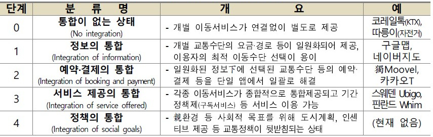 1920년대 이후 비약적으로 발전한 도시는 제조 산업뿐만 아니라 서비스, 금융, 문화 등 다양한 기능을 종합적으로 수행하며 세계 인구의 절반 이상이 거주하는 환경으로 변화되었다[1]. 현대 도시 경계를 넓히는 이동수단으로 자동차의 역할은 절대적이다. 도시내 이동수단은 개인용 승용차 외에 도시철도, 버스, 트램, 지하철, 퍼스널모빌리티, 공유차량 등 다양하게 분화되어 인간의 이동 역량을 높여왔다. 이러한 이동수단의 분화는 외려 도시내 교통수단의 선택에 복잡성을 가중시키는 결과를 초래하였다. 현대 도시민은 복잡한 교통수단 가운데 비용대비 효과적인 선택에 어려움을 느끼고, 이로 인해 도시 행정에 이동수단 관리에 통합의 필요성을 요구하고 있다.