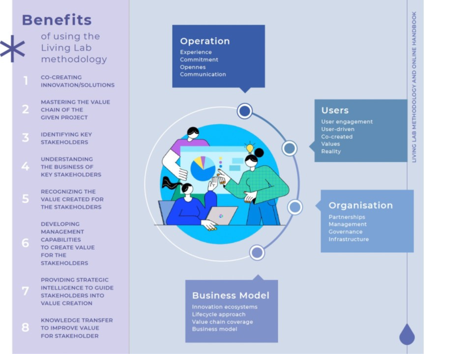 다양한 유형의 신규 및/또는 관련 이해 관계자에게 가치를 제공하는 실행 가능한 비즈니스 모델을 만드는 것이 리빙랩의 지속 가능성의 핵심이다. 고려해야 할 중요한 요소는 예를 들어 자금 출처, 가치 제안, 린 접근 방식, 영향, 목적 및 주요 지표다.
