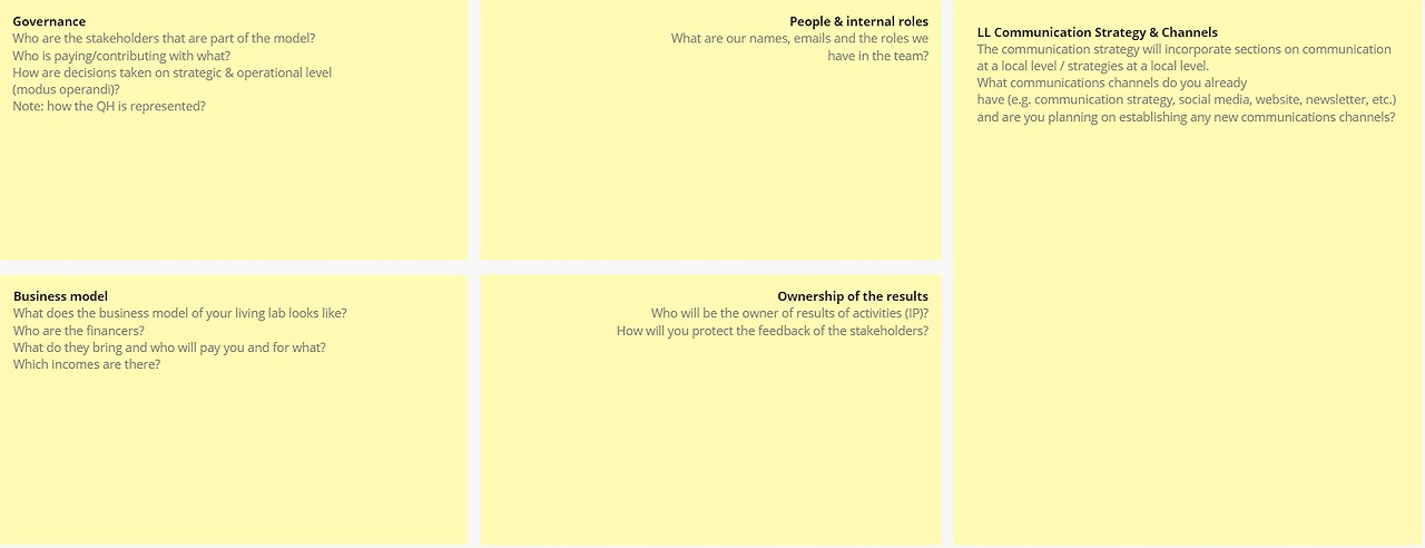 유럽리빙랩네트워크(ENoLL)은 지난 몇년간 이해관계자의 나선형 꼬임(Helix)과 코크리에이션의 구체적인 방법을 찾으려고 고심하였다. 그들은 리빙랩 운영설계를 돕는 [리빙랩 매핑캔버스]를 개발하여 제공하고 있다.