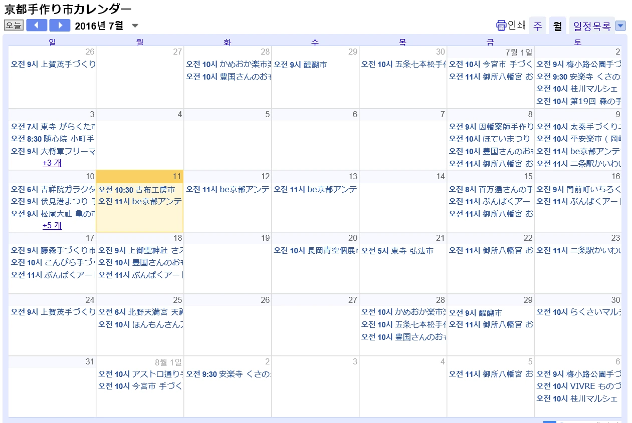 교토 곳곳에서는 수제품 벼룩시장(手作づくり市:てづくりいち)이 운영된다. 벼룩시장(フリーマーケット)의 형태로 열린다.