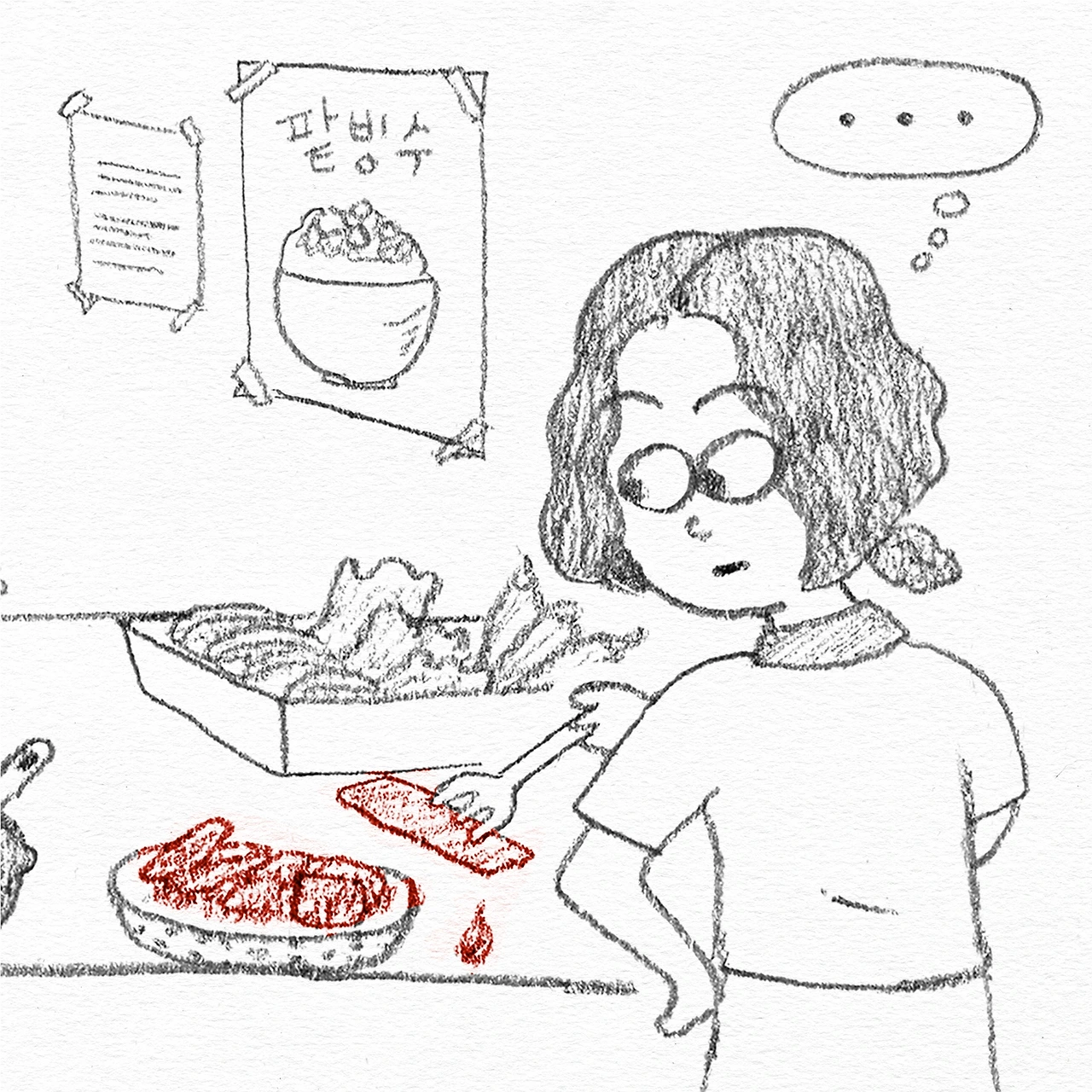그 후로도 엄마는 포기하지 않고 또 다른 떡볶이집의 비법을 알아보고 다니더니, 어느날은 알고 보니 웬만한 떡볶이집들은 고추장을 쓰지 않고 고운 고춧가루를 쓰더라며 기쁜 얼굴로 돌아왔다. 며칠 지나지 않아 김칫국, 명태조림, 오징어 젓갈, 삼색 나물 옆에다 떡하니 떡볶이 내어놓고는 가게에서 팔기 시작했는데, 그걸 지켜보던 나는 비밀을 지켜낸 떡볶이 가게 아주머니의 판단이 훌륭했다는 생각을 잠깐이지만 했던 것 같다.