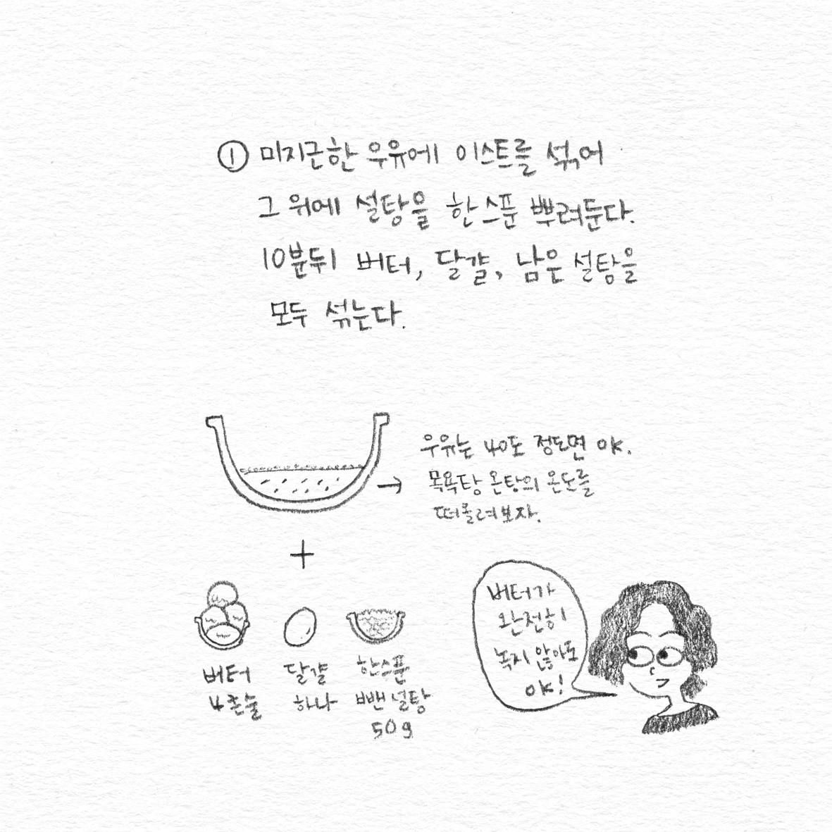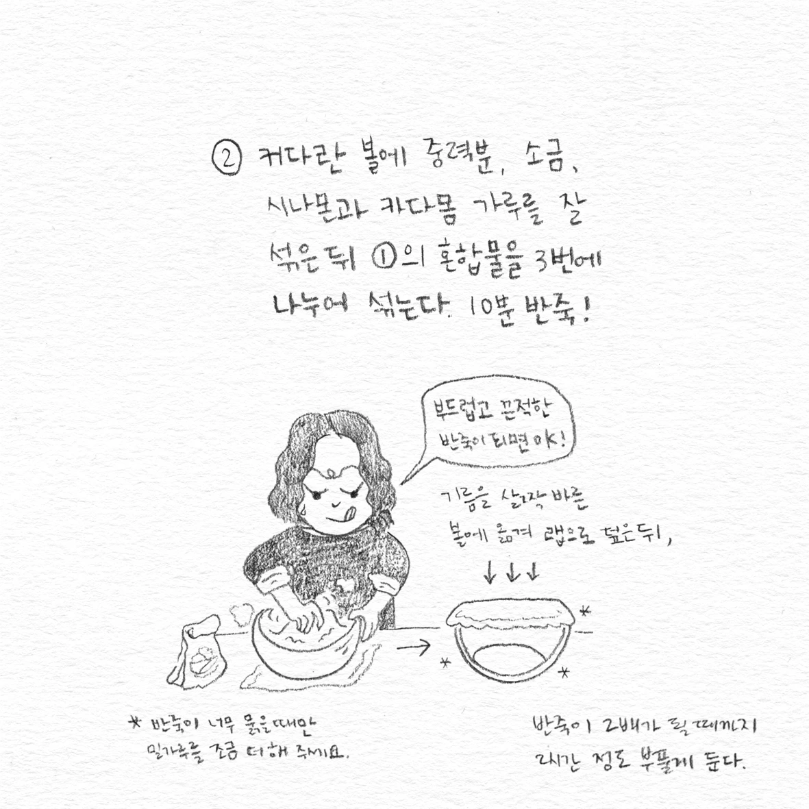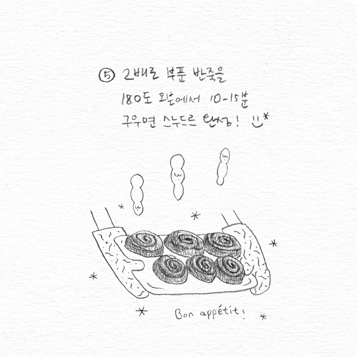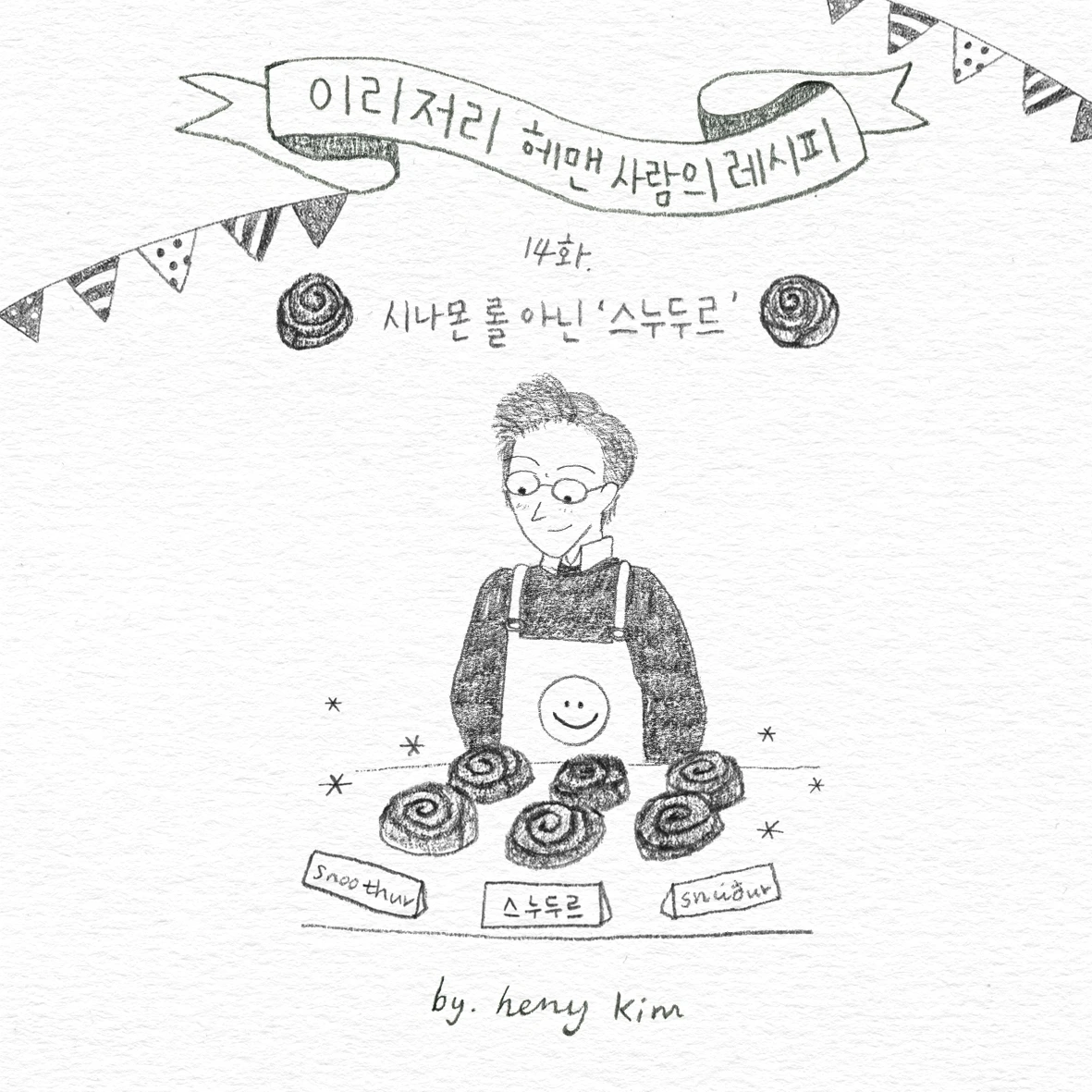 E는 언어에 관심이 많았고 멀지 않은 미래에 아이슬란드어를 사용하는 사람들이 사라질지도 모르겠다는 걱정을 하고 있었다. 하루는 E가 반 친구들과 함께 나눠 먹을 빵을 구워왔는데, 요리에 별로 관심이 없던 그의 첫번째 시도였다. 발효가 덜 되어 작고 단단하게 완성된 그 빵의 맛을 본 뒤 “이거 시나몬 롤이야?”하고 내가 물으니 E가 다시 얼굴을 붉히며 외쳤다. “Snúður!” “...스누들?” 스누두르! 스누두르가 뭐냐면, 조금 더 크고 납작한 시나몬 롤이다. E는 스누두르의 자리를 시나몬 롤이 채어갔다고 생각하는 것 같았다. 나는 갑자기 좋은 생각이 떠올랐다.
