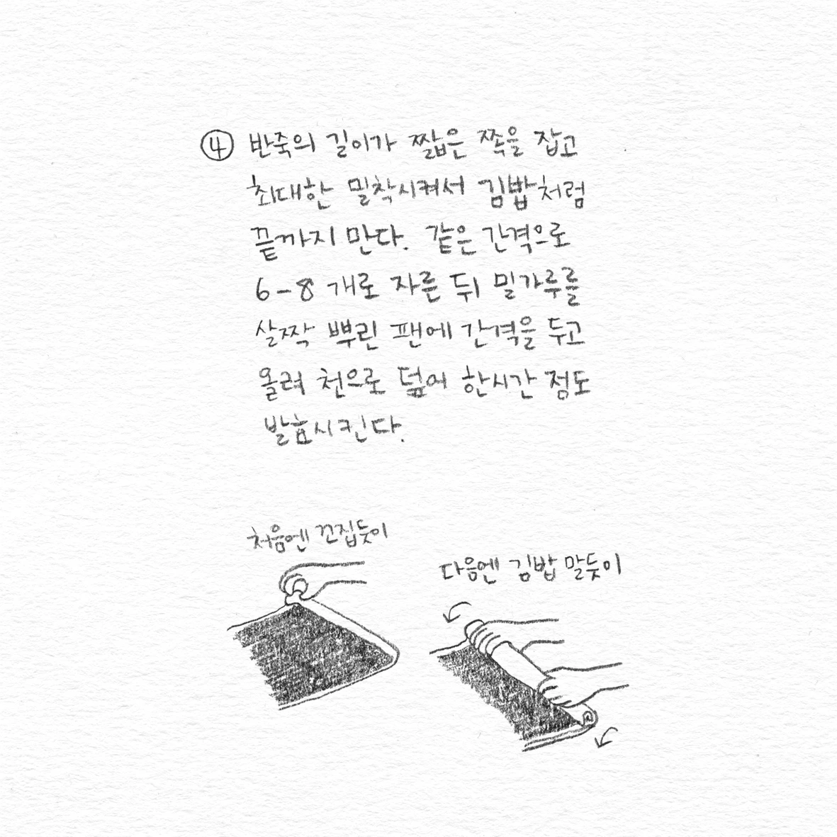 쉴 새 없이 흔들리던 나를 조금이나마 진정시켜 주었던 쉰 아홉살에 어른이 된 E의 아버지는 요리를 즐겨하고, 그때는 마침 한국 음식에 푹 빠져 있던 때였다. 아저씨가 나에게 블로그에 올라온 탕, 무침, 찜, 구이의 사진들을 보여주면서 “얘, 이 다채로운 음식들 좀 봐!” 라고 외쳤을 때 나는 E의 가족들의 환대에 조금이라도 보답하기 위해 한국의 음식을 대접하기로 마음 먹었다.