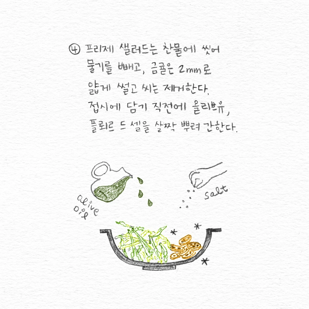 짧은 기간이었지만 나는 바보같을 정도로 열심히 일했다. 배우는데 너무 진지하게 임했기에 주방 내부에서 핸드폰을 한 번 들여다 본 적도 없었다. 그 말인즉슨, 보이는 것이 전부인 것처럼 보이는 요즈음 내 친구들은 내가 보낸 시간과 경험에 대해 알고 있는 사실이 하나도 없다는 말이었다. 그 안에서 나는 하루 10시간이라는 시간동안 쉴 새 없이 달렸다. 나는 말도 안되는 실수도 많이 저질렀지만 재료를 일정하게 자르는 일에도 음식의 모양을 살려 담는 일에도 점점 능숙해져 갔다. 그런데 이렇게 매일 10시간씩 어떤 일을 계속 한다면 사실 무슨 일이든지 잘 하게 될 수 있을 것 같았다.