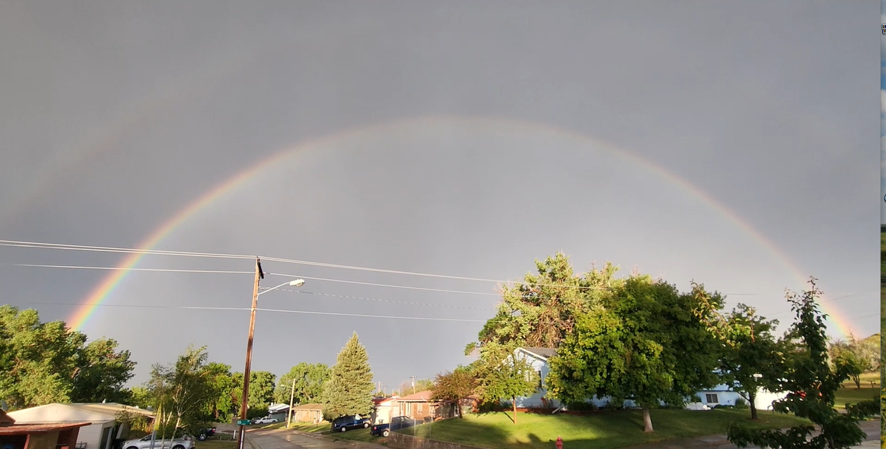 자락동만 조명하는 스포트라이트와 무대 배경같은 쌍무지개
