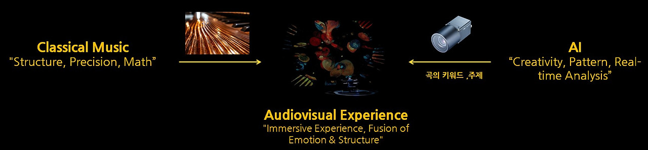 그 실험의 중심에는 클래식 음악이 있었다. 클래식 음악은 인간이 보편적으로 공감할 수 있는 감정의 구조를 담고 있음과 동시에 음악사 속에서 축적된 심리적, 철학적 해석의 맥락을 포함한다. 우리는 이러한 음악적 시간성을 인공지능의 알고리즘 안에 주입함으로 AI가 인간의 감정적 리듬과 정서를 어떻게 이해하고 재구성하는지를 실험했다. 드뷔시의 달빛과 메시앙의 불의 섬을 중심으로 구성된 프로젝트는 이러한 문제의식을 시각화한 대표적인 사례였다.