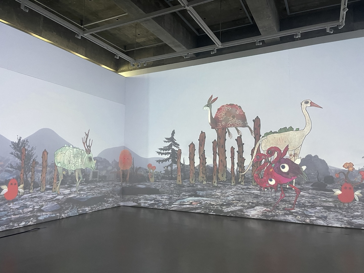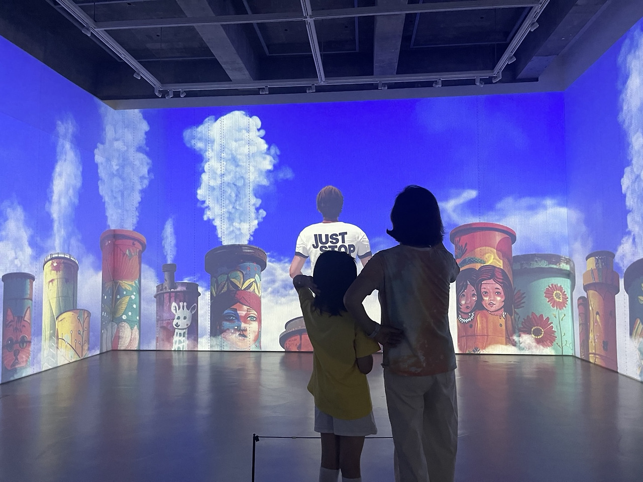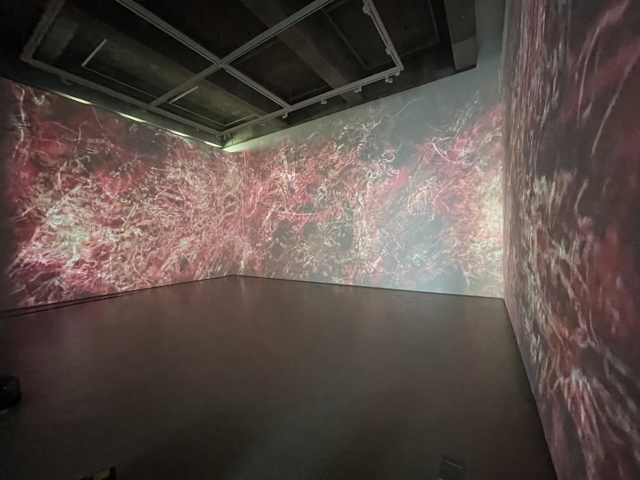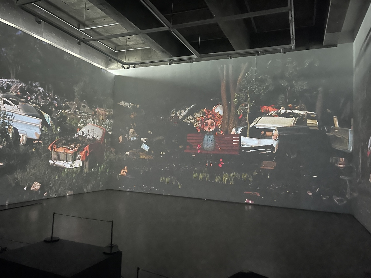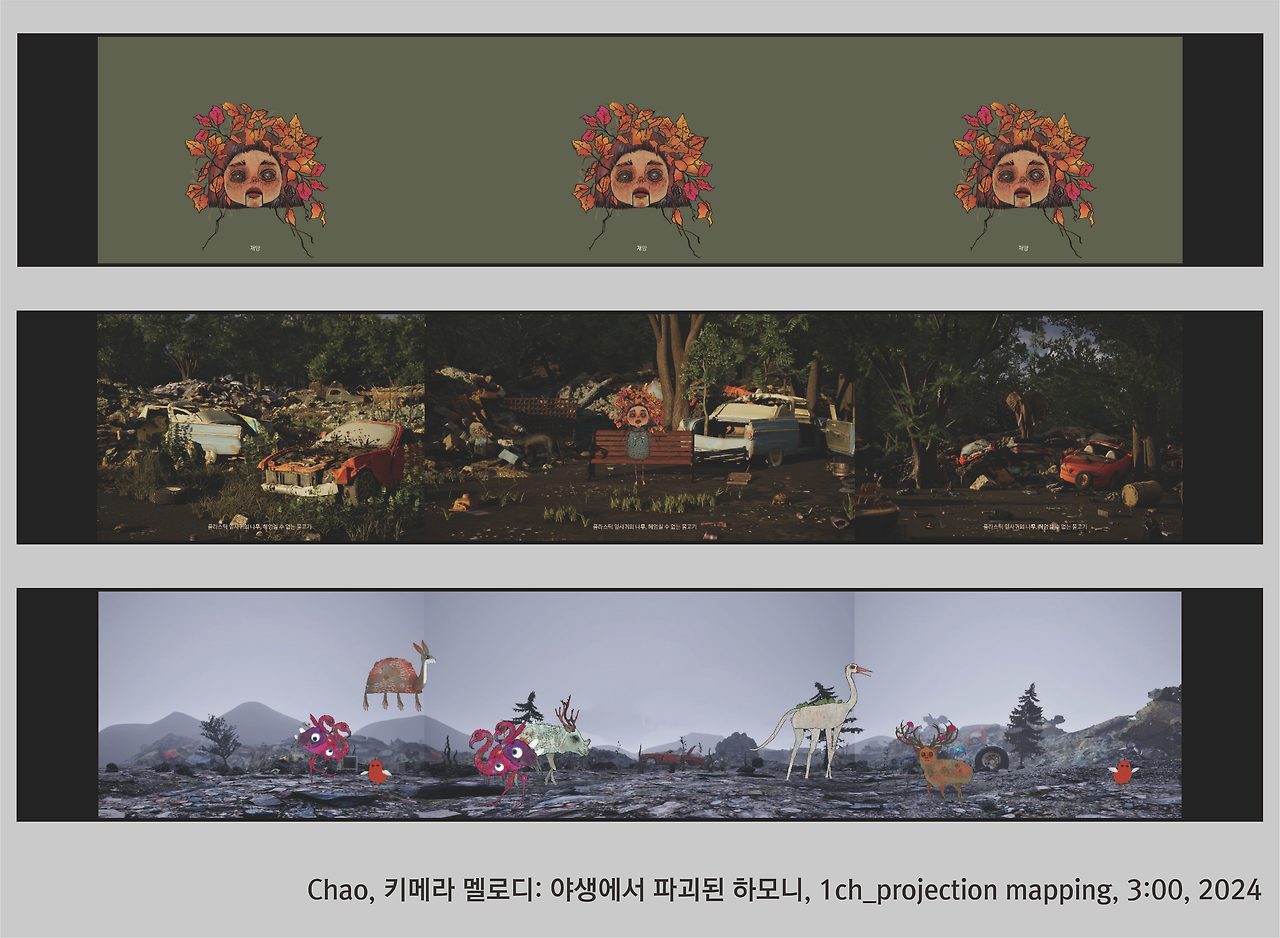 전시는 세 명의 작가가 각기 다른 시선으로 풀어낸 세 개의 파트로 구성되었다. 전시장 내부는 삼면의 프로젝션 맵핑으로 둘러싸였고, 관객은 중앙의 단상 위에 서서 각 파트를 마주하게 되었다. 마치 무대 위에 오르듯, 관객은 단순한 수용자를 넘어 작품의 맥락 안으로 ‘배치’되었다.