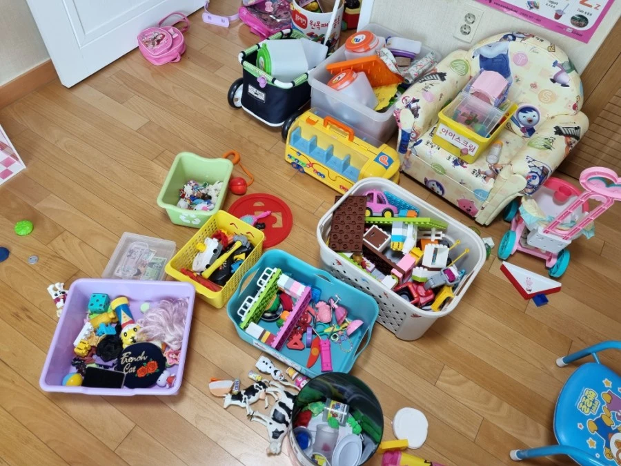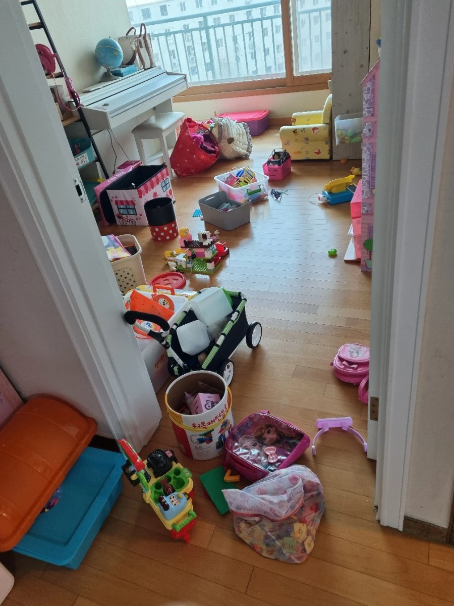 분명히 미니멀 라이프 따라 한다고 두어 달 전에 장난 감방에 장난감들을 죄다 처분했는데, 아직도 산더미인 게 참 의문이다.