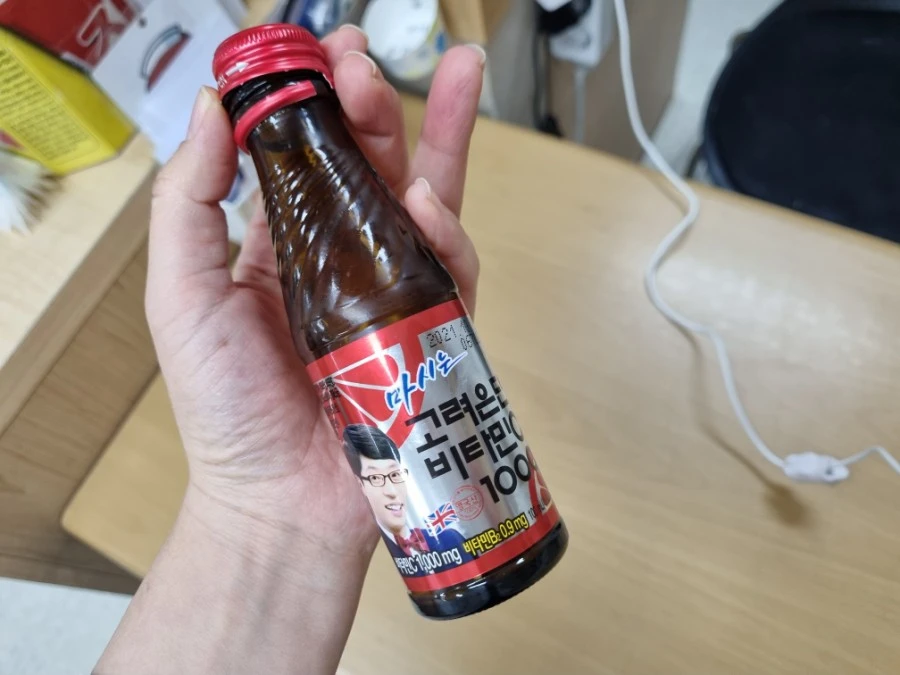 인계 끝나고 일 시작 전, 힘내고 일하려고, 환자분이 주신 비타민 음료를 마셨다.