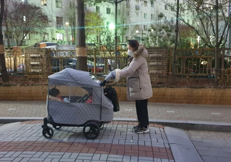 날이 추워서 아이들을 웨건에 태워 친정에 데려다 주는길.