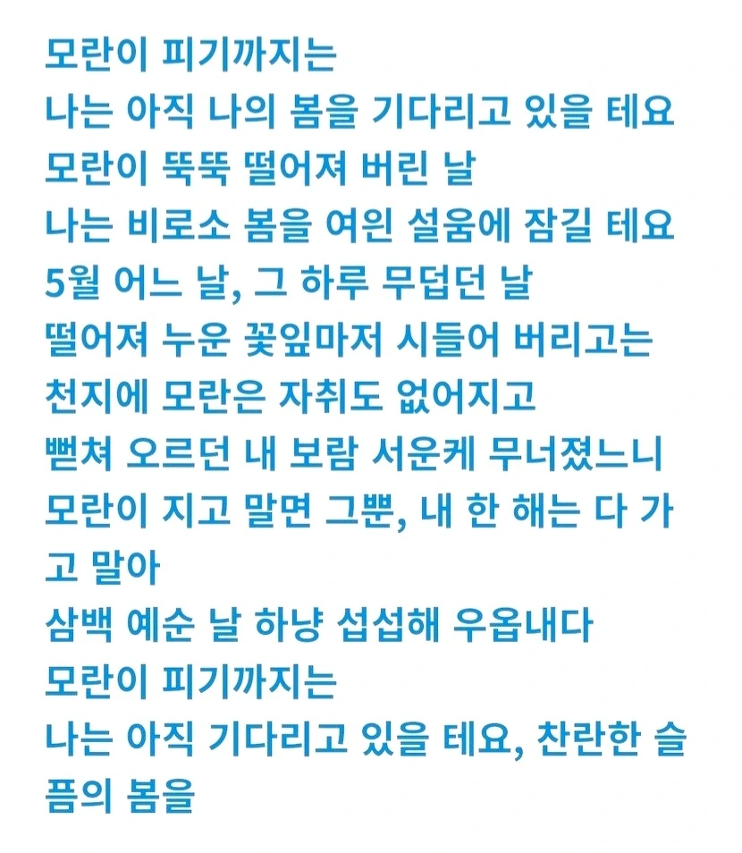 나는 아직 기다리고 있을 테요, 찬란한 슬픔의 봄을