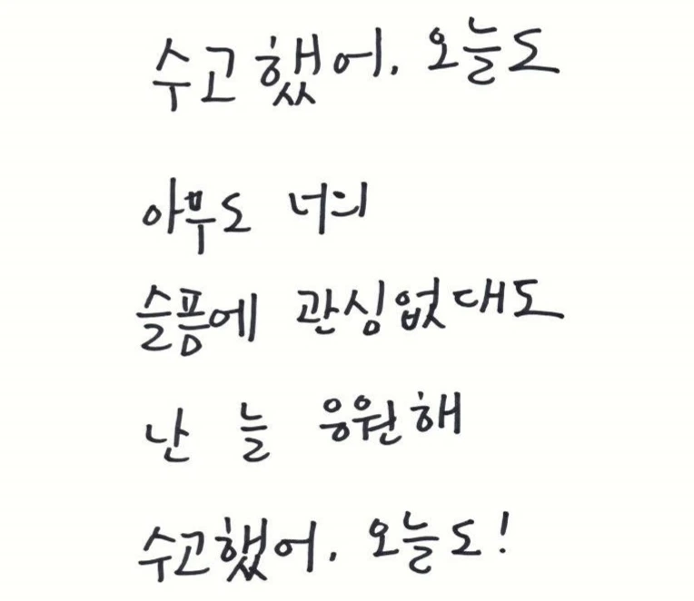 " 아무도 너의 슬픔에 관심 없대도 난 늘 응원해. 수고했어, 오늘도!"