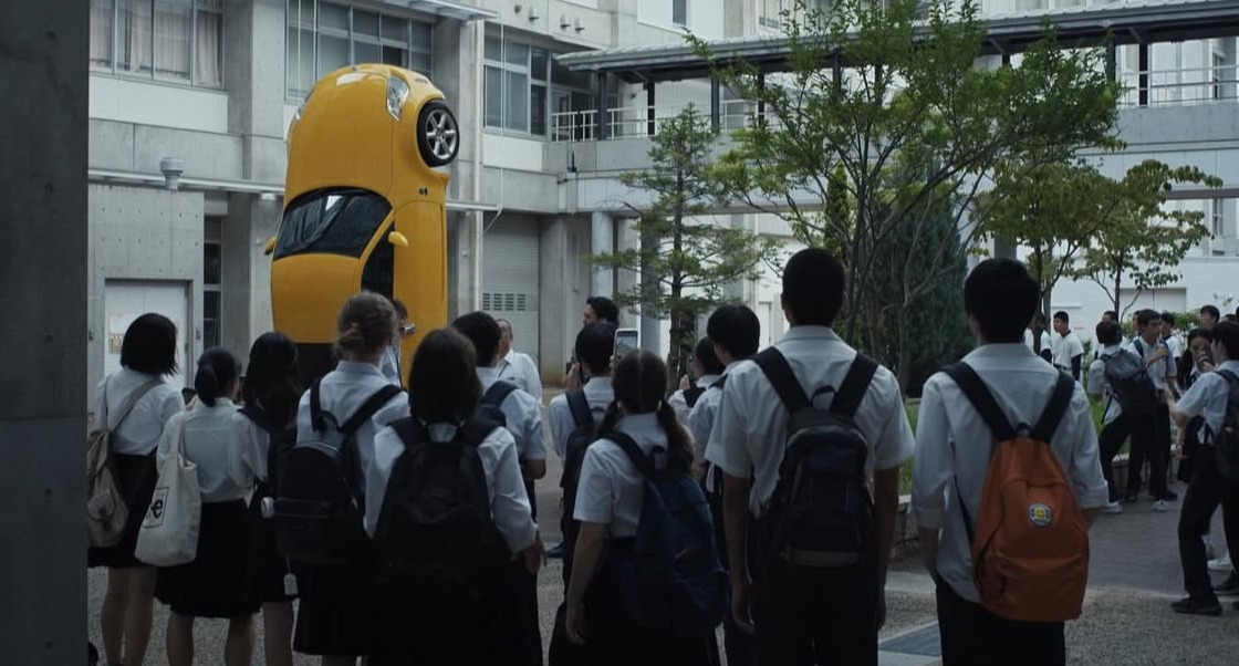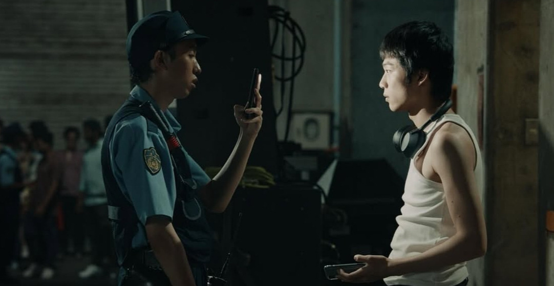 모든 건 지진경보로 시작된다. 유타(구리하라 하야토)와 코우(히다카 유키토), 그리고 친구들 아타, 밍, 톰. 무대는 근미래 도쿄의 어느 고등학교. 아이들은 밤이 되면 비밀리에 학교 동아리실에 모여 테크노 음악을 튼다. 빠른 리듬, 좁은 공간, 거침없는 에너지. 몰래 클럽에 숨어들고, 새벽까지 춤추고, 놀고, 도망친다. 하지만이 도시엔 ‘미래’가 지나치게 빨리 도착해 있다. 클럽에서 아이들이 붙잡히고, 얼굴 인식 AI가 신원을 식별하는 장면은 일상에 깊숙이 파고든 통제의 시작을 암시한다. 이후 학교에서도 한 사건으로 인해 시스템이 전면적으로 작동하기 시작한다. (그 유명한 짤ㅋㅋㅋ 운동장 한가운데 교장의 스포츠카가 거꾸로 세워져 있다. 누가 봐도 의도된 테러이자, 비명 같은 연출. 웃기면서도 뭔가 섬뜩하고, 또 힙해..)