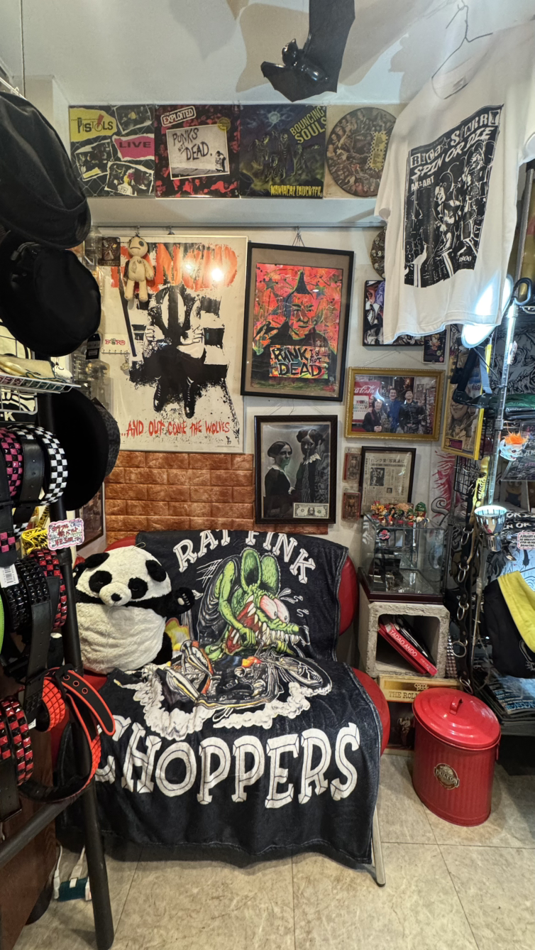 징 100억 개 박힌 레더 보고 어떻게 안 들어감. 들어가면 여기도 컨셉에 잡아먹힌 한 분 계심. 헤어가 심상치 않은 펑크족 사장님. 밴드도 하시는데, 강매당했어요.. 펑크 서브컬처 베이스 + 밴드 굿즈셀렉션의 전당. 펑크 그런 거 잘 모르지만 알고 싶어 지게 만드는 곳.. 의류보다 장난감, 스티커, 굿즈, 프린팅 미친 밴드굿즈 티셔츠 많음. 근데 이거 그냥 관상용으로라도 사야 함. 나 언제 흑화 할지 모르잖아.
